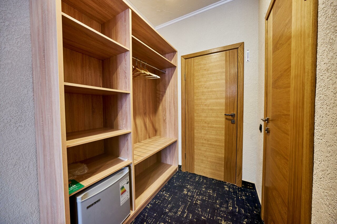 Жить тут можно при условии что все другие отели закрыты. Температура в номере 14 градусов. Да, за окном холодно, минус 28. Но факт остается фактом. На ресепшене уверяют что это градусник неправильный) хотя он висит при входе в номер и вешал его не я. Хорошо на второй день принесли обогреватель. Горячая вода с утра тоже отсутствовала, решили вопрос на втрой день только. Шумоизоляции никакая, отель построен из osb листов. На окнах отсутствуют ручки. Зачем они нужны?) По сути отель — шалаш) Вся территория в стройке, везде ковролин, страшно подумать чем там дышал. Единственный плюс — кафе. Кормят вкусно. Отель подойдет мазохистам или заселить тещу.