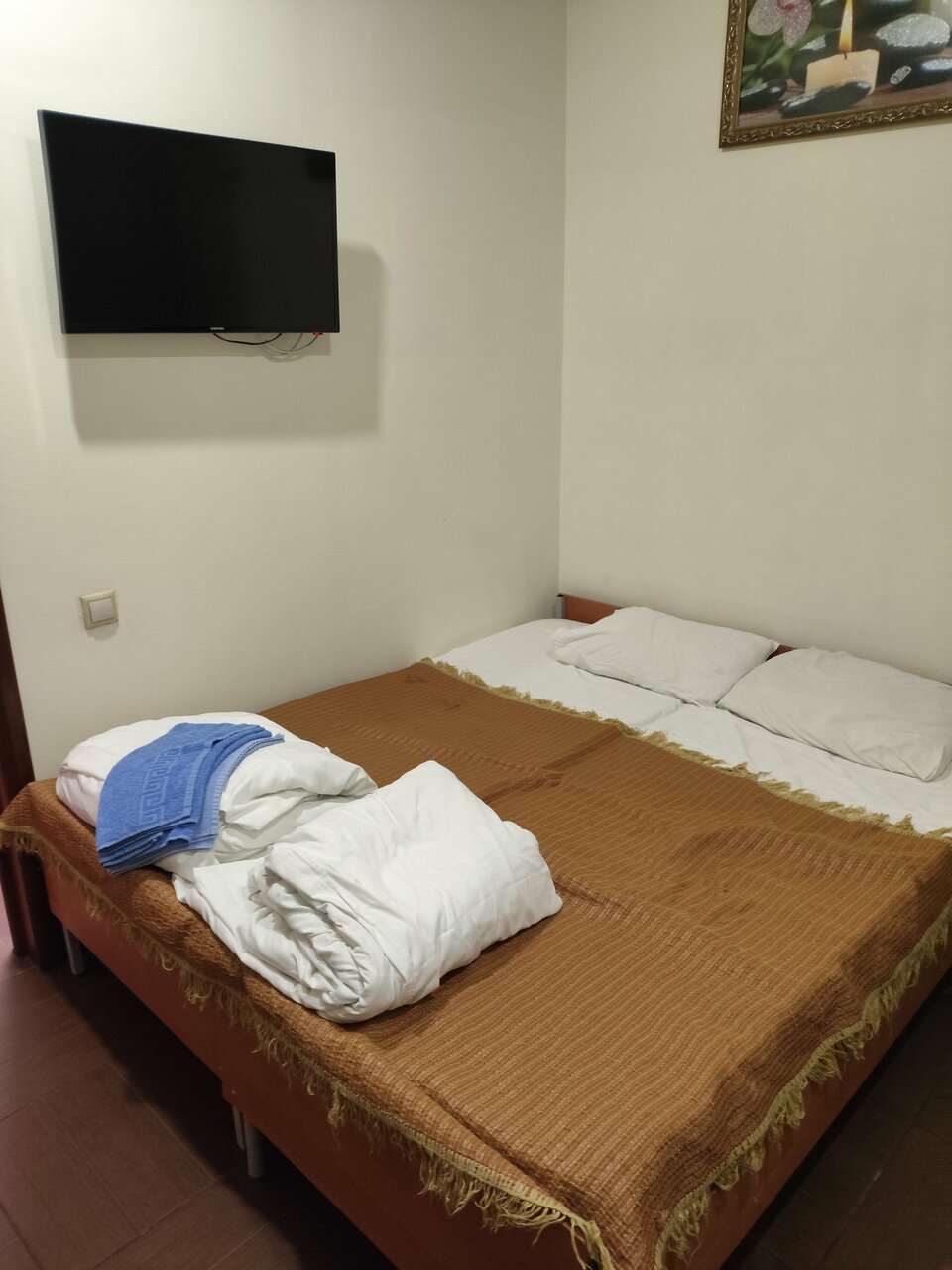 Номер очень маленький, тапочек одноразовых нет, зубных щеток нет, одноразового мыла,геля нет. В санузле холодно очень,запах канализации отвратительный. Из плюсов расположение от метро и выдача обогревателя,иначе замёрзли бы. Кровать уставшая,также же постельное белье. И это за 3000
