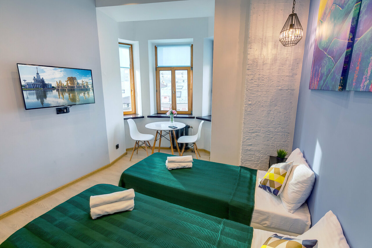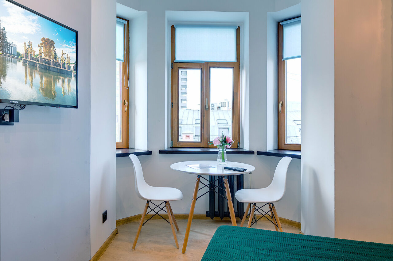 Чисто, уютно, ключи получаешь дистанционно, никого не видишь и не слышишь, есть свои плюсы. Номера удобные, продуманные. Кухня оборудована более чем достаточно для путешествия. Есть и стиральная машина в хоз блоке, и утюг, и пр.. Несмотря на расположение, в номерах очень тихо, шум улицы отсутствует совсем. Заезжая в но ера, в, егда знаешь на что рассчитываешь. Всегда чисто — от постельного и посуды, до санузла. Можно готовить в номере, можно кушать в кафе — магазинов и кафе в окрестностях море. Для прогулок по Москве место идеальное — в пешей доступности весь центр у пределах садового кольца и даже дальше. Метро рядом. Останавливались уже раз 5 здесь и теперь для нас других вариантов нет — комфорт и чистота для меня очень важны в путешествии.