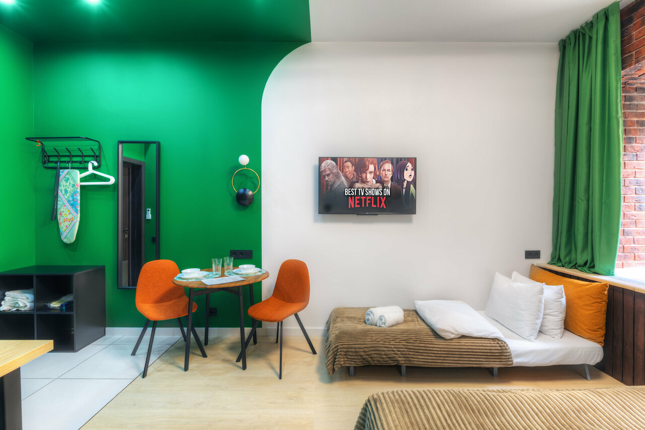 Пока что лучшее место из моего опыта, чтобы остановиться в Москве. Все для жизни есть, чисто, аккуратно, продуманно, рядом с метро, центром, магазинами, кафе и ресторанами. Из совсем придраться: - хотелось бы иметь в апартаментах шкаф, полочек под одежду не хватает, а на вешалки повесить не все получается; - была небольшая грязь на подоконнике; - хотелось бы фен чуть получше. Тот, который был, дул только супер горячим воздухом без возможности переключения режимов. В остальном все супер, точно остановлюсь в этих апартаментах еще раз и посоветую другим)