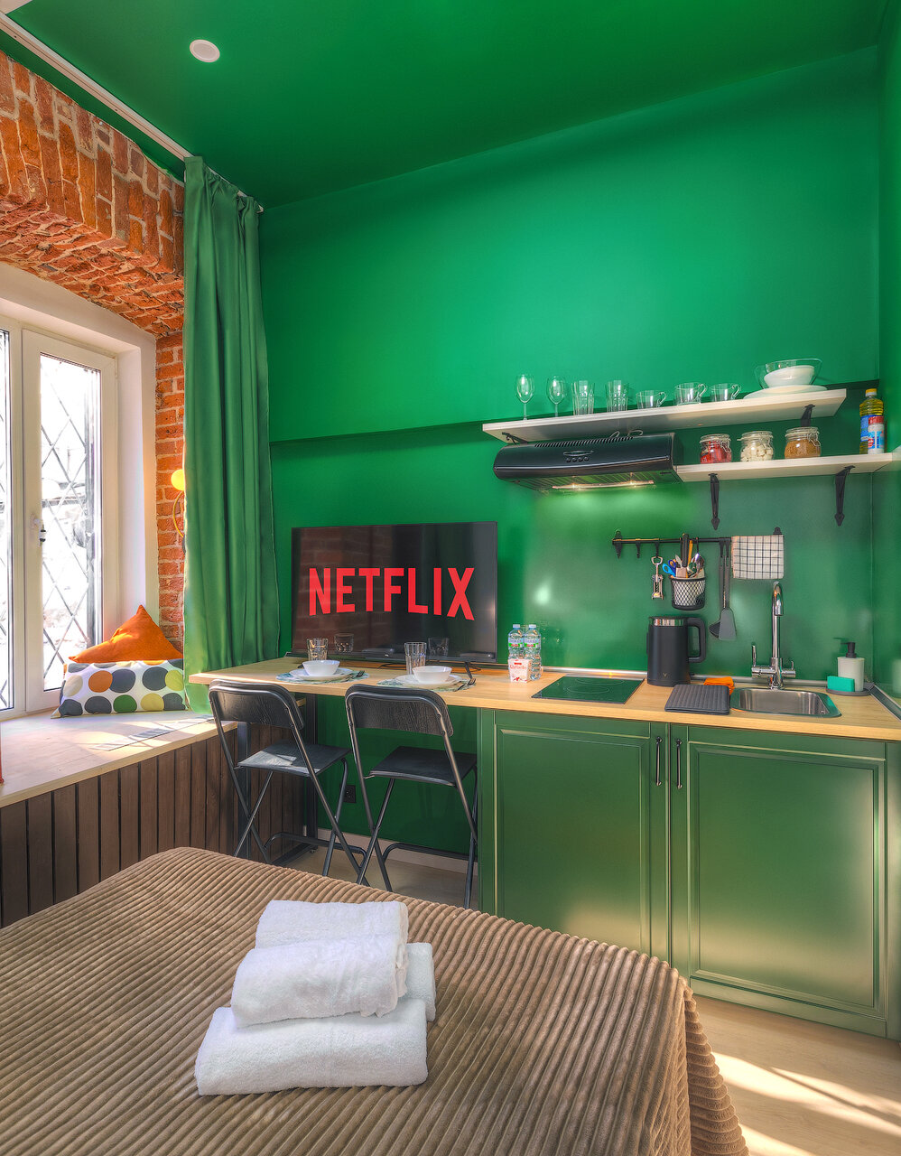 Прекрасные апартаменты в центре Москвы, жили здесь с парнем в течение недели и нам очень понравилось! Есть кондиционер и прачечная что очень порадовало, всё было чисто и аккуратно
