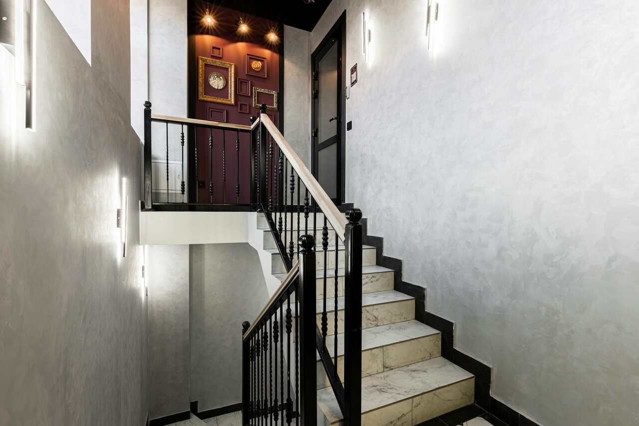 Снимали номер перед регистрацией брака. Из плюсов: в номере наверное есть все, что только может понадобиться: фен, одноразовые щетки, тапочки, чай/кофе, гладильная доска, посуда, приборы, сейф, беруши, что то для чистки обуви даже было… Интересные лампы и зеркало в ванне (сенсерное доп освещение). И вживую номер выглядит куда лучше, чем на фото, достаточно качественный ремонт. Из минусов: второй уровень рассчитан на человека ростом до 180-185 см, нижний этаж на фото более просторный, но это уже не так принципиально. Не очень хорошая звукоизоляция, слышно улицу. В целом очень понравилось все.