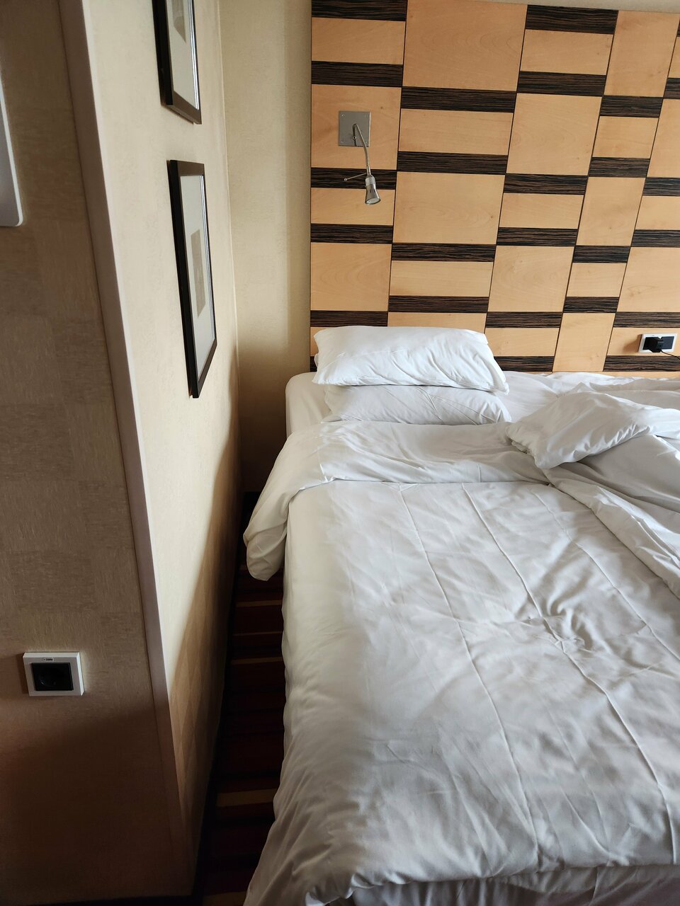 Были с мужем в данном отеле с 31.01 по 1.02. Номер понравился, все чисто и аккуратно. Да, оснащение нельзя назвать современным, но все необходимое в номере было. Отдельный плюс за оперативность рум-сервиса – заказывали лед, бокалы и сырную тарелку, все доставили быстро. Завтраки нас очень порадовали! Есть буквально все – каши, мюсли, хлопья, фрукты, овощи, мясные и сырные нарезки, красная рыбка, омлеты (как готовые, так и можно попросить сделать с различными наполнителями), блинчики, оладьи, сосиски и еще много чего. Также порадовало, что кофемашины работают с натуральным молоком, а не с сухим, так что кофе тоже был вкусным. Зона с бассейном – не в классическом понимании отеля, она относится к фитнес центру. Бассейн с водой 26 градусов и раздельные м/ж сауны. Джакузи к сожалению не работал. Все довольно старенькое, но в хорошем состоянии. В целом, мы остались довольны. Проживание + завтрак на двоих через Яндекс. Путешествия вышло у нас в 7.500