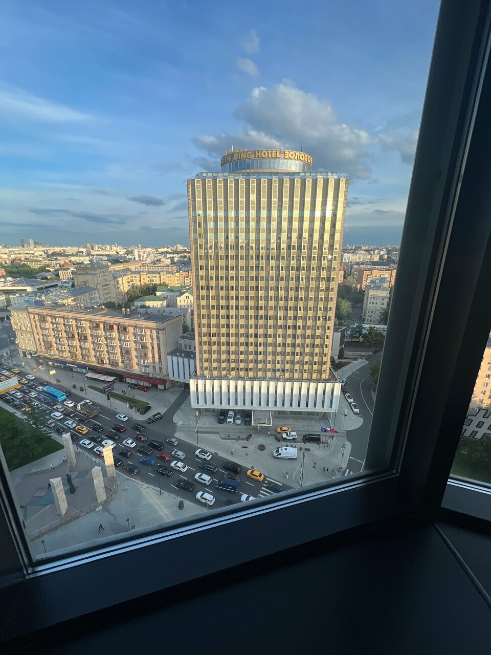 Очень красивый вид из окна 23 этажа. Номер очень приятный. Завтраки выше всех похвал. Выбор очень большой и все вкусно. Расположение отличное, рядом метро Смоленская. Одну звезду сняла за то, что невероятно долго приходилось ждать лифты. Это важно учитывать, если вы торопитесь. Приходится ещё закладывать 5 минут на то, чтобы не опоздать. Такси лучше заказывать не в номере, а в холле первого этажа. Кстати, напротив здание отеля стоит по сути его близнец, абсолютно такое же здание отеля ‘Золотое кольцо’, цены там несколько выше, а по сути Азимут не уступает.