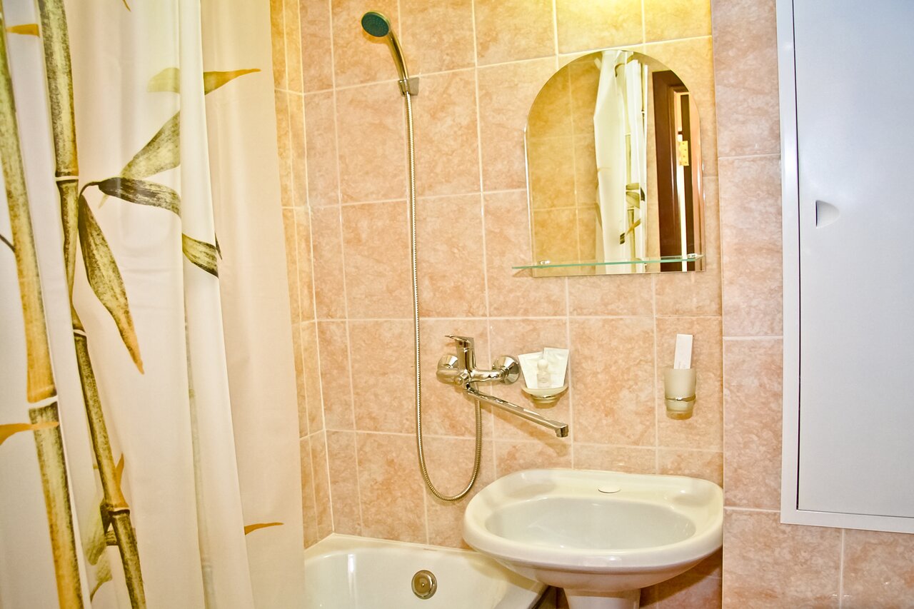 Свои две звёзды отрабатывает на 100%. Но не больше. Может не гореть люстра, но бра будет работать. Засор в ванной не устранят и душ не отремонтируют, но унитаз чистый. На шведский стол на завтрак не рассчитывайте. Дадут молочную кашу, глазунью, салат, сыр, колбасу, блин, или запеканку. Всё без выбора. Сыр с колбасой самые дешёвые. Но запеканка и блины отличные. Свои 250 руб. этот завтрак стоит. Номера убирают после выезда гостя. Полотенца чистые.