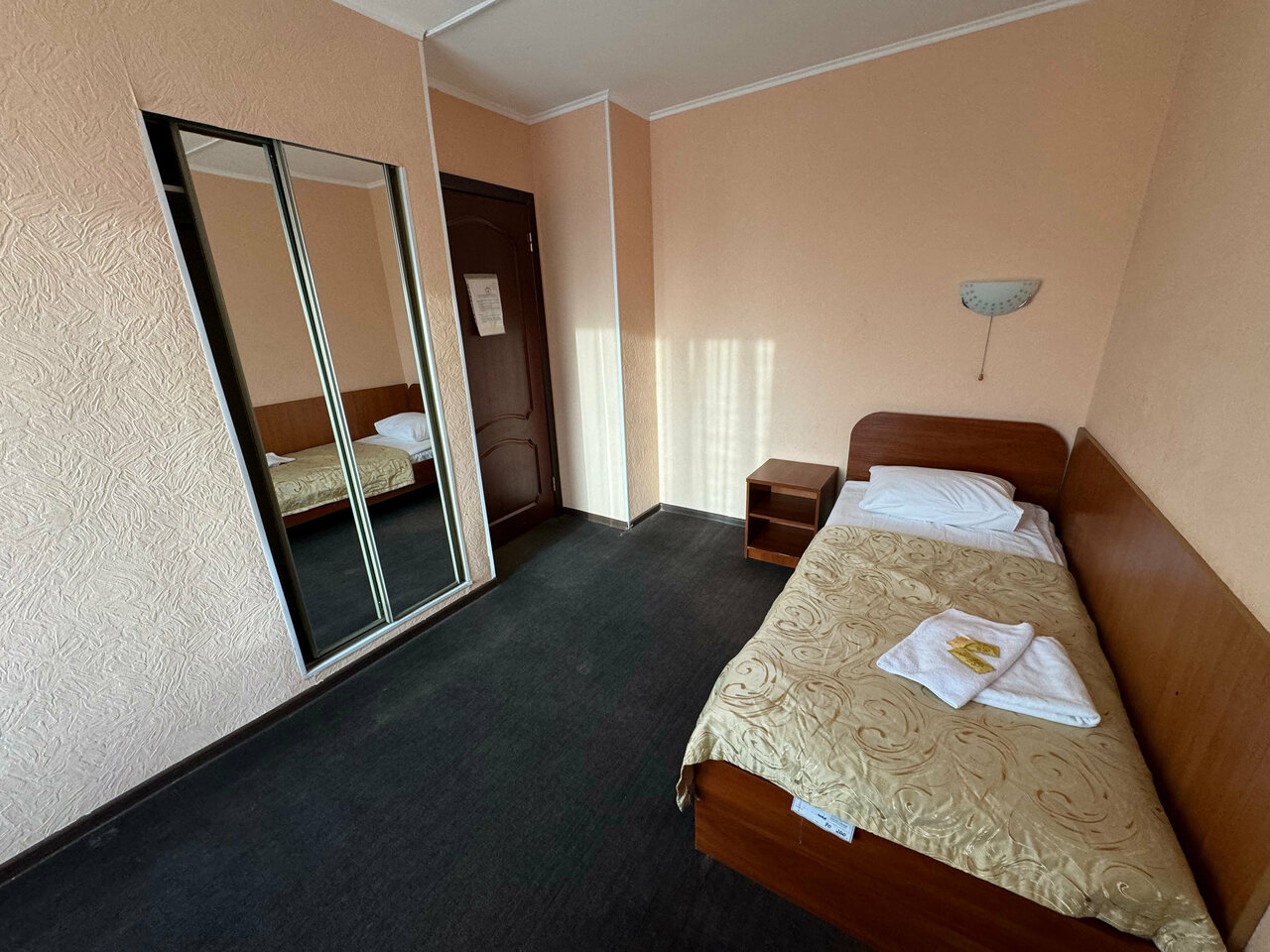 Поставлю твердую четверку. Отель в целом оправдывает звёздность и без каких либо претензий на что-то большее. Номер конечно немного отличается от того, что на фото при броне. Но я, как фотограф, в целом понимаю, что хотелось показать красивую картинку. Для одной двух ночевок место подходит более чем. Лучше, чем в хостеле. Номер находился в блоке из двух номеров с общей ванной. Интересное решение. У меня соседей не было. Поэтому проверить как это, не вышло. В номере чисто, 3 полотенца положили и набор для душа. Чайник, стаканчики, телевизор. Было немного душновато. Спал с приоткрытым окном.