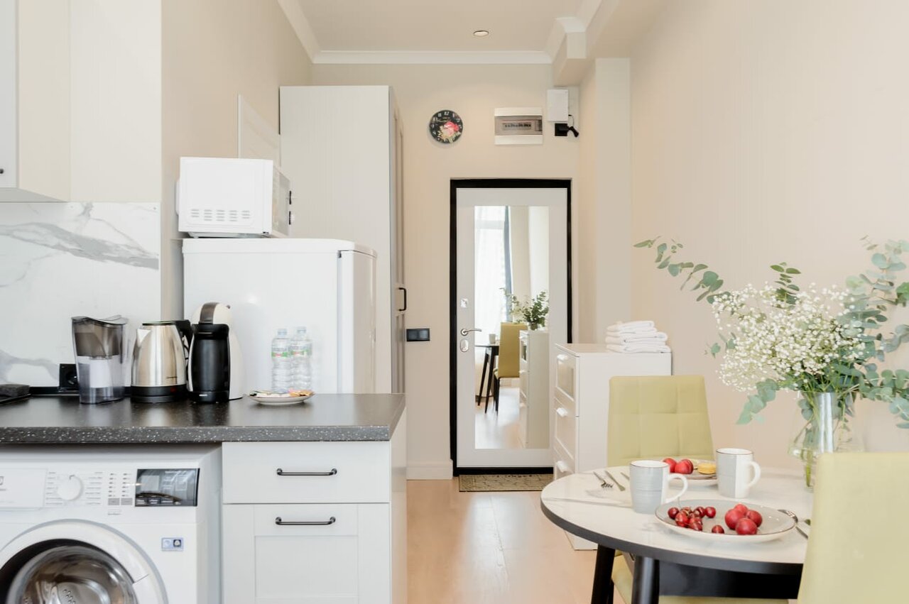 Хорошее место: близко до метро и достопримечательности все рядом! Чисто, уютно: от кофемашины до стиральной, есть утюг, питьевая вода и капсулы кофе) Под боком кафе и магазины на любой вкус. Абсолютно не к чему придраться! Однозначно рекомендую.