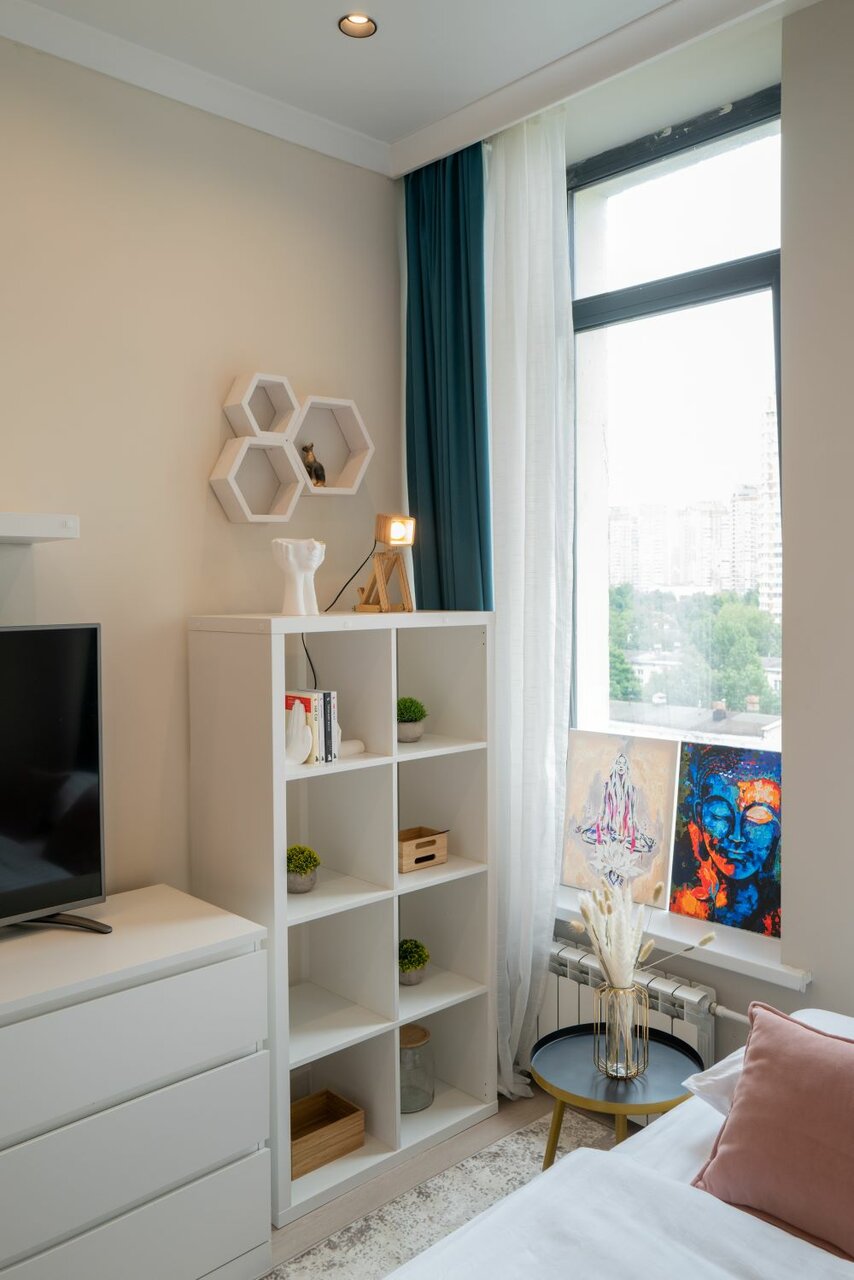 - Приятные мелочи (постеры, сухоцветы в вазе).