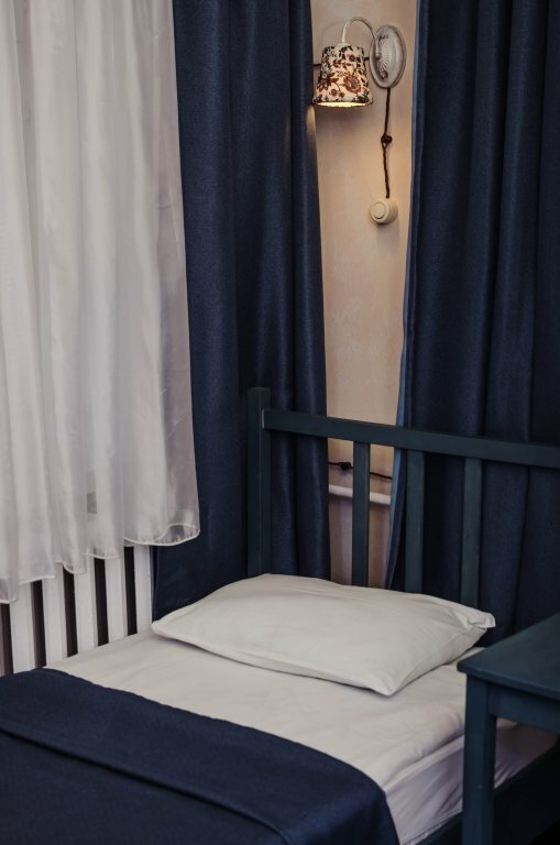 Хорошее расположение в пешей доступности от Курского вокзала. Днем по телефону предупредили о позднем заезде. Дружелюбный администратор встретил, быстро заселил. Бронировали двухместный номер с одной кроватью и удобствами в номере. Достался номер Cuba. Санузел достаточно просторный, сантехника — в хорошем состоянии. Сам номер небольшой, практически всю площадь занимает кровать. Тусклое освещение в номере. Лампочка покрыта пылью. На потолке есть след от гардины, но самой гардины нет. Поэтому оконная рама была бесхитростно затянута шторой, которая упала при первом прикосновении. Матрас удобный, постельное белье чистое. Оторванные доски под матрасом разъехались в разные стороны, пришлось поднимать матрас и поправлять их, прежде чем лечь. Было бы хорошо починить/заменить кровать, установить гардину и повесить шторы.