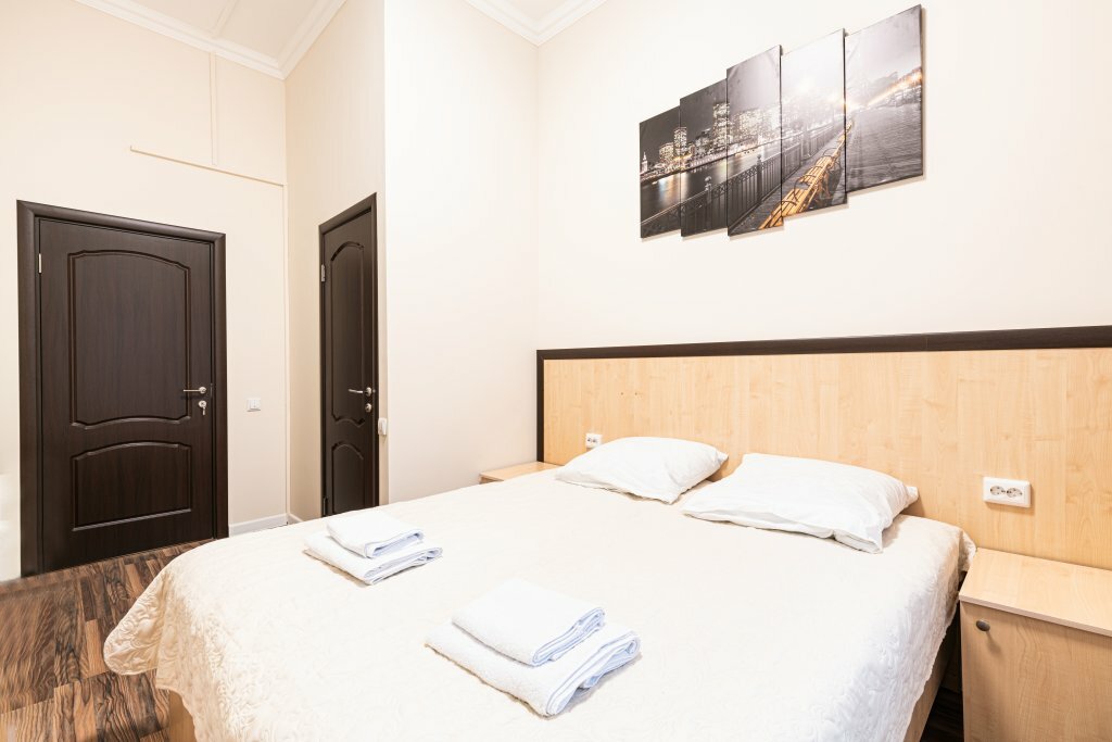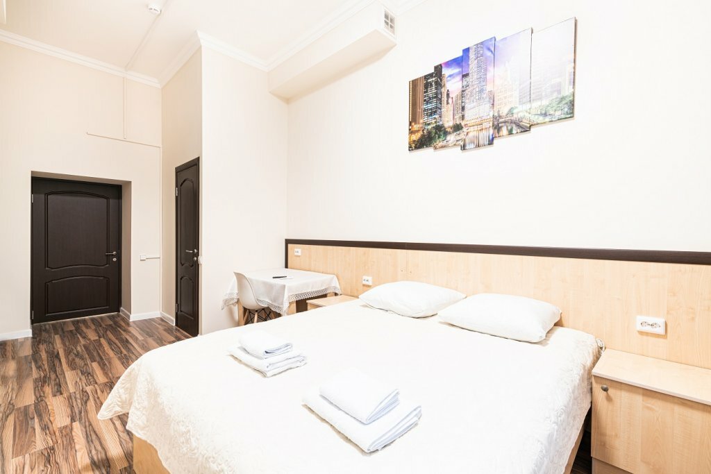 Cветлый,просторный номер со всем необходимым для комфортного проживания двух гостей. Просторная кровать 180 на 200 см с новым матрасом , рабочая( или обеденная зона )с электрическим чайником и чайными принадлежностями, кондиционе,вешалка для одежды.