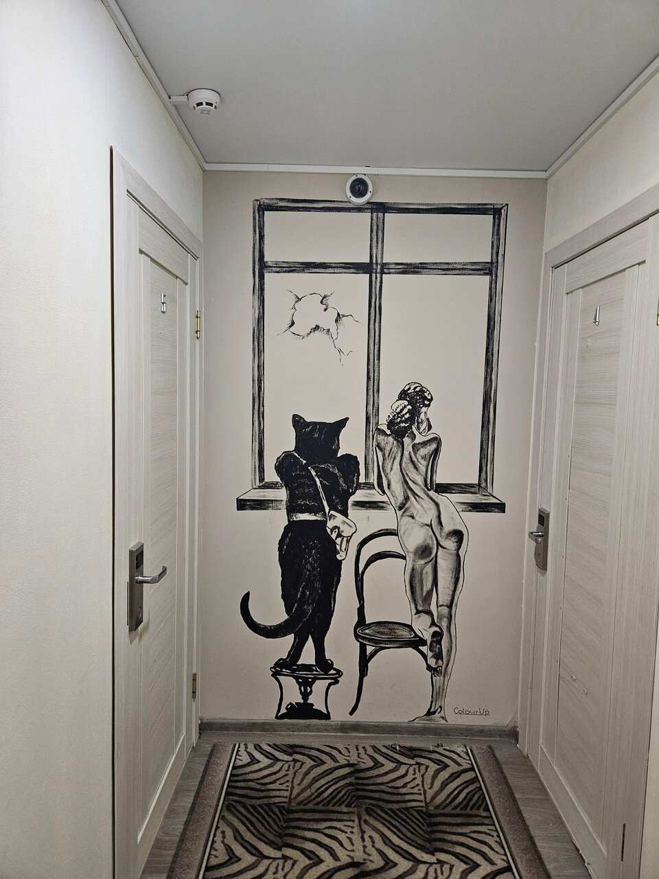 Ребята владельцы! Я не знаю есть ли у Вас номера которые висят на фото, но тот номер в который хотели поселить меня, внизу возле кухни который- это… Позорище! Люди в нем жить Не должны! Да и мыши даже в таком жить Не должны, откровенно говоря… Дверь в туалет сломана, вытяжки в туалете нет, на потолке что то чёрное, похожее на плесень.. Номер почти по размеру кровати, краска вздута, отметины от обуви на стенах, чайника нет, да ему и Негде быть, нет места… И цена 3900! Ребят это неуважение сперва к самим себе, а потом уже к всем своим клиентам…