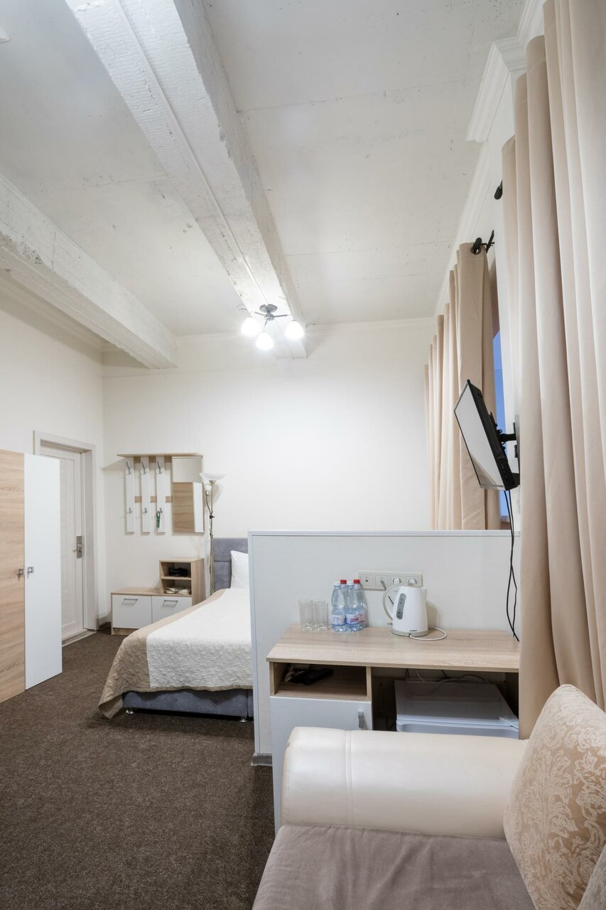 Отличная гостиница, очень удобное расположение, уютно и чисто, администратор очень приветливая, цена отличная. В номере есть фен, полотенца, одноразовые тапочки, мыло, гель, шампунь и зубная паста.Так же есть кондиционер и ночью не шумно, т.к. сама гостиница находиться во дворе между двумя жилыми домами, есть парковка для авто, что не мало важно, потому что почти в центре машину никуда не поставить бесплатно. В номере чисто, убрано, хороший интерьер. В целом довольны и если соберемся ехать еще раз с остановками, то точно заселимся в эту гостиницу.