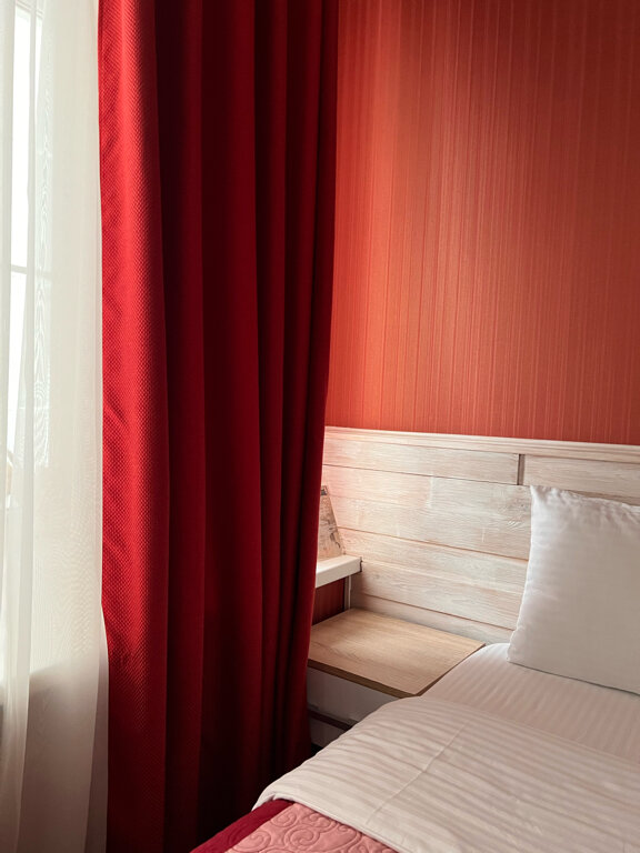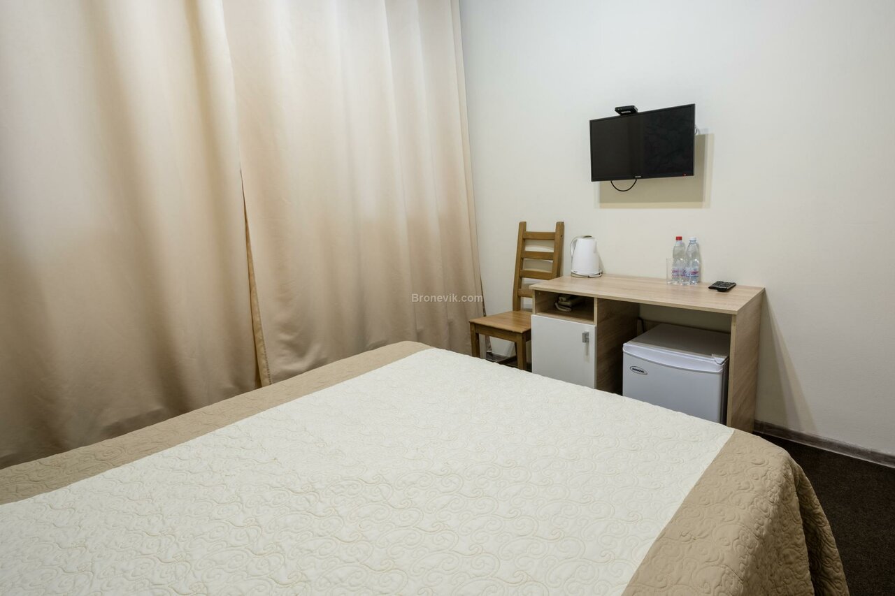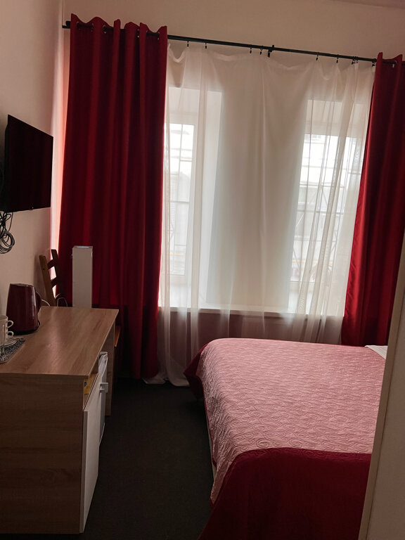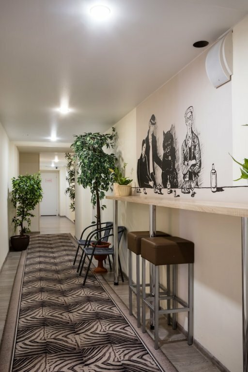 Удобства: — Номера от 4500 до 6000 ₽/ночь с кондиционером, звукоизоляцией, Wi-Fi, телевизором, холодильником и чайником. — Гипоаллергенные номера, проживание с животными (платно). — Бесплатная парковка, платный трансфер, круглосуточная стойка регистрации. — Общая кухня, камера хранения, прачечная, автоматы со снэками.