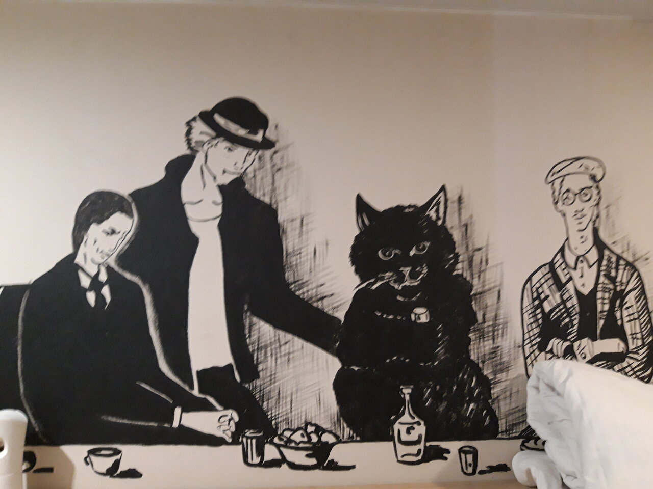 Кота не было. ’Континентальный завтрак’ — это каша и блинчики в контейнерах из магазина и кофе из автомата. Проблемы со смесителем в душе. Окно в номере не закрывалось плотно, было холодно.