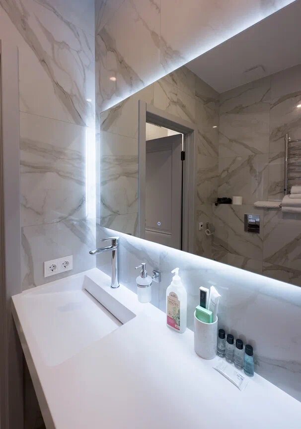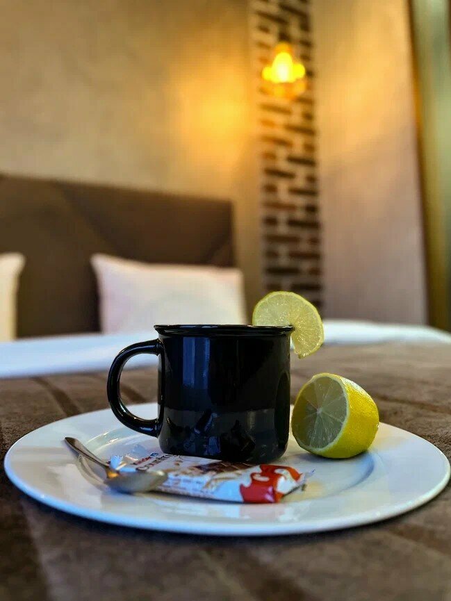 Стильный номер с минималистичным дизайном площадью 20 кв.м. В номере: гигиенические принадлежности, фен, тапочки, сейф, холодильник, чайная станция, телевизор, кондиционер, шкаф для одежды, письменный стол.Завтрак по меню входит в стоимость