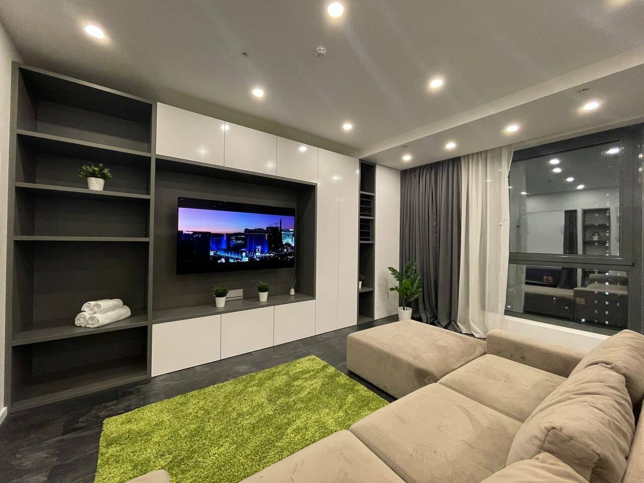 Отличные апартаменты по приемлемой цене. В номере было всё необходимое, мини-кухня, чайник, чай, посуда и столовые приборы, гладильная доска, утюг, стиральная машина и порошок, зубной набор на каждого и пр. Рекомендую, за углом огромный ТРК ‘Авиапарк’, метро ЦСКА, на первом этаже ЖК ‘Лайнер’ куча кафе, магазины. Для проживающих разърешен въезд на территорию для парковки, поздно вечером не всегда есть места, днём и утром без проблем.