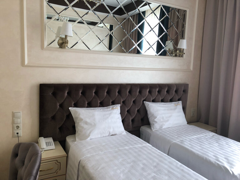 Описание номера 'Бизнес' Двухместный с двумя отдельными кроватями.Номер 'Бизнес' Двухместный с двумя отдельными кроватями- это идеальное место для особых моментов в жизни, будь то романтическое свидание, медовый месяц или просто командировка. Э...