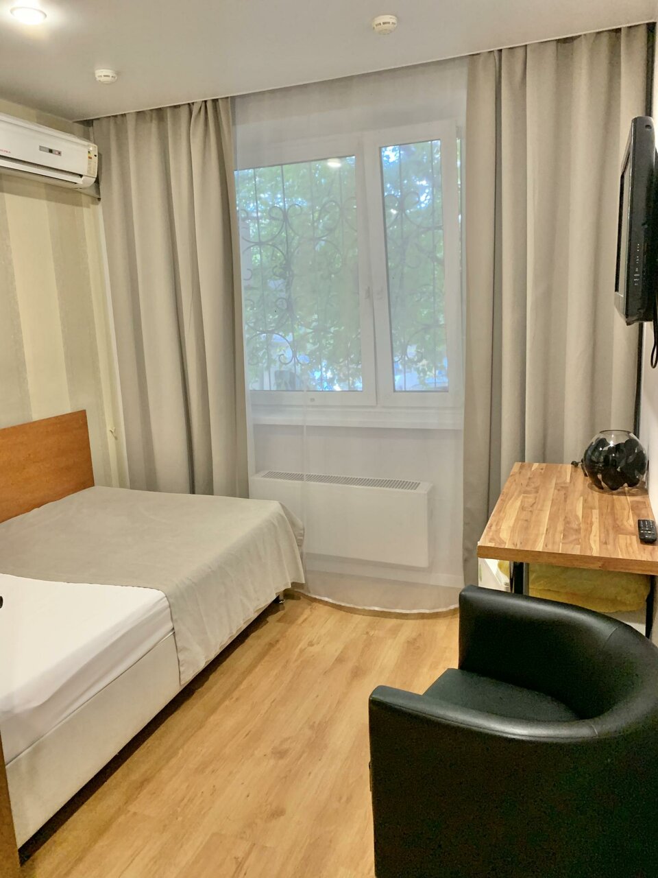 Если честно мне не очень понравилось. Обычная маленькая комнатка, телевизор постоянно глючил и отключался. Стены тонкие, соседей слышно. 5 тысяч слишком дорого, проще квартиру на сутки снять и по деньгам и по удобствам. Ну это лично моё мнение. Персонал вроде вежливый.