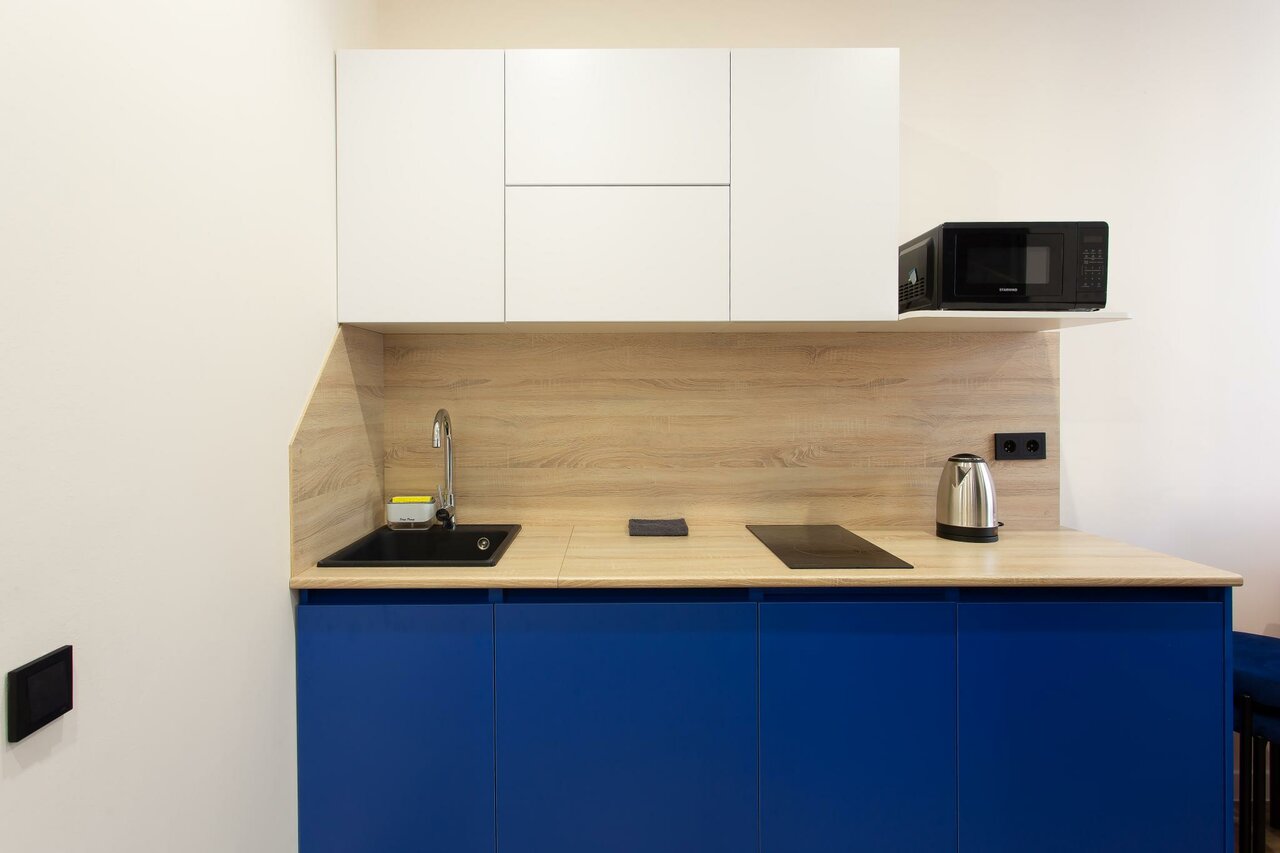 - Наличие чайника, посуды, микроволновки и холодильника.