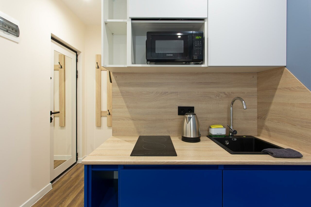 - Наличие мини-кухни с необходимым для приготовления еды.
