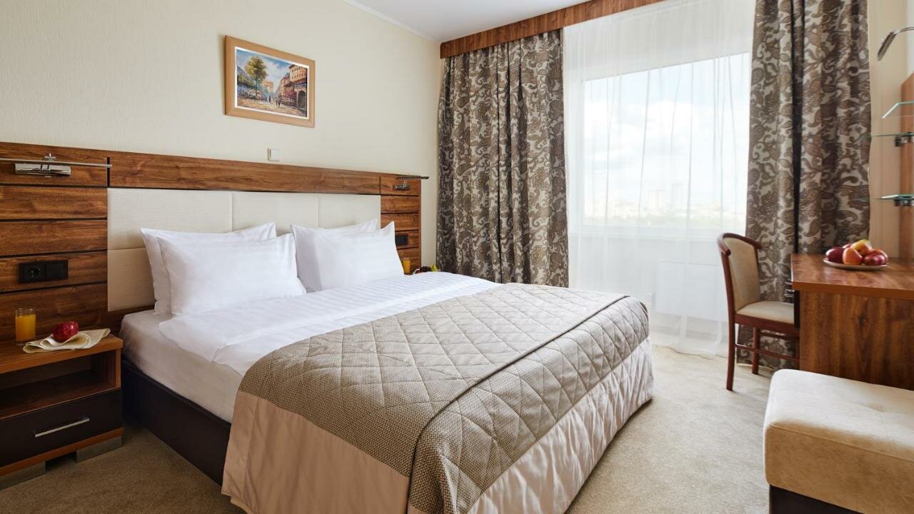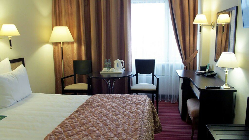 В принципе гостиница хорошая. Большой номерной фонд. Гостеприимный ресепшн. Практически всегда есть возможность поселится по вполне демократичным ценам. Но есть и минусы: интерьеры номеров довольно ‘уставшие’, кафель в ванной комнате ‘супер-скользкий’ будьте на чеку, краны подачи воды болтаются, телевизоры ‘ перестройку помнят’ ( раритетные) и репертуар там только специфический ( ни мультиков детям ни кино практически не посмотреть одни ток шоу с ‘собачащимеся’ персонажами и ‘рен-тв’). Зато хорошие свежие полотенца, шампуньки всякие в наличии.