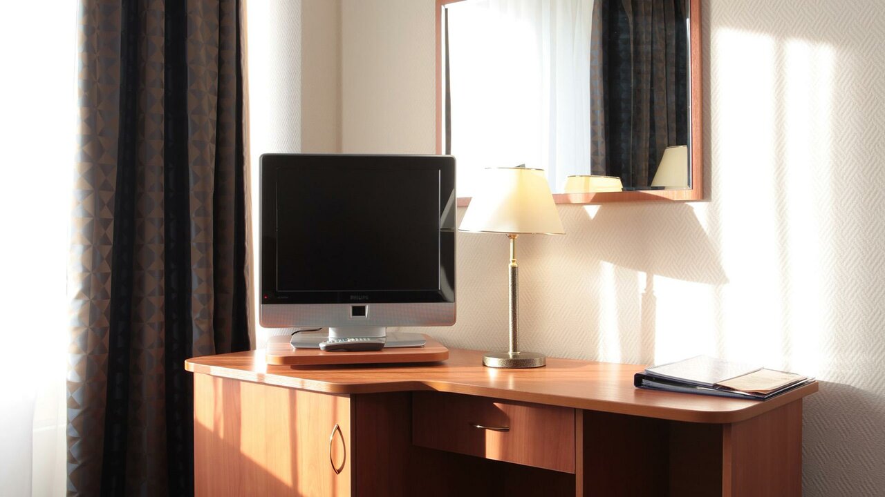 Однокомнатный номер, небольшая прихожая, спальная комната двуспальной кроватью 160×200, журнальный столик, кресло, стул, холодильник, телевизор и телефон. В номере ванная комната, фен, тапочки, комплект полотенец, косметический принадлежности д...