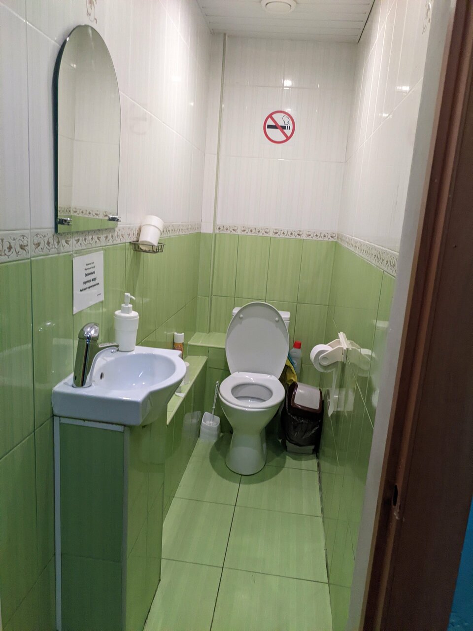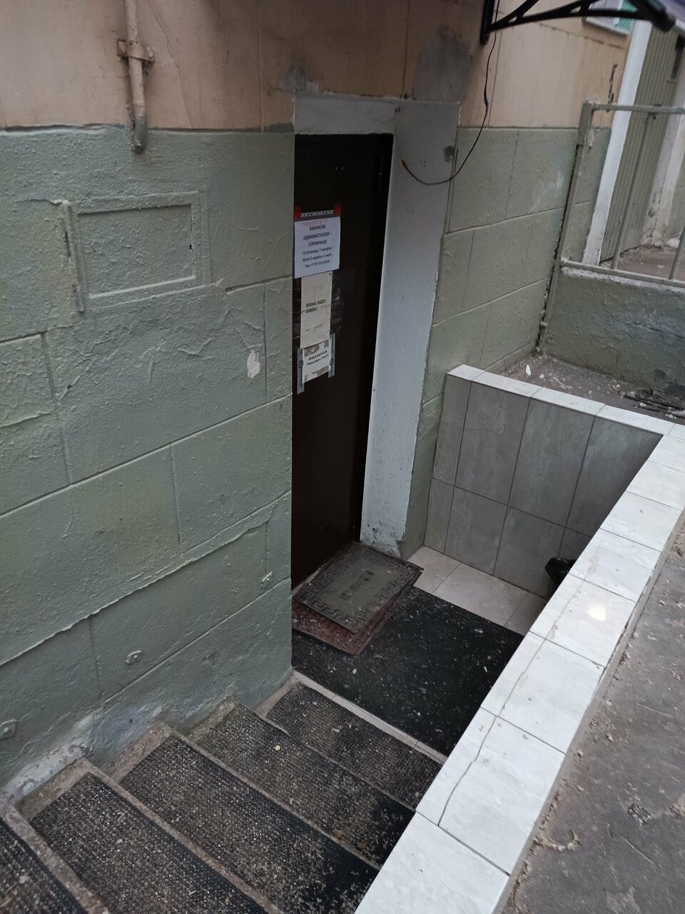 - Поломанная дверь душевой.
