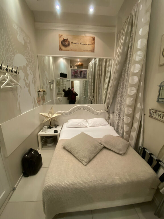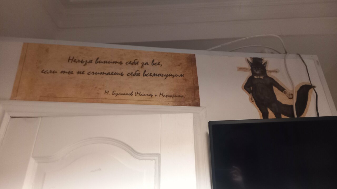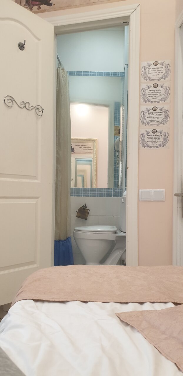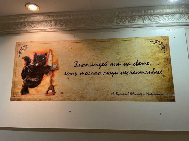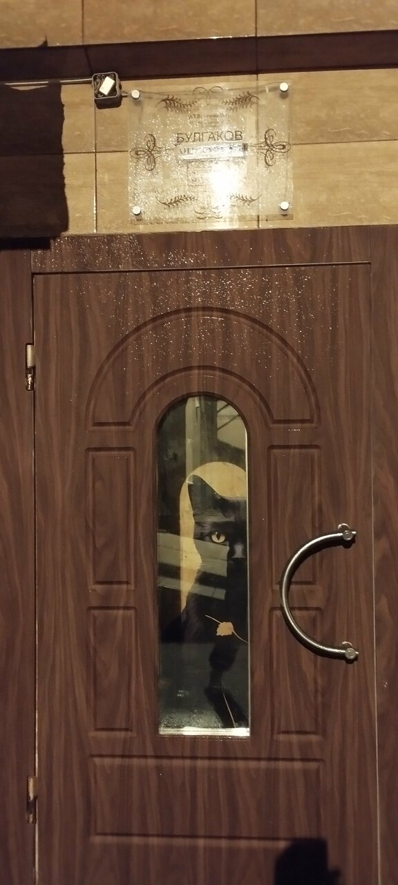 Если Вы любите дорого и богато, то Вам не сюда. Если Вы любите атмосферные места -то Вам точно сюда!!! Очень уютный отель с Булгаковским духом, что соответствует названию. Вход расположен во дворе. Поднимаясь по лестнице понимаешь, что попал в особенное место: пианино, уютные диванчики, старая радиола, настенные росписи, ложные двери и конечно-кот! Ресепш на втором этаже. Но, не ожидайте увидеть офисную стойку)) Все иначе и как то по домашнему Администраторы очень доброжелательные и готовы помочь, подсказать по любому вопросу. Номера небольшие, но как по мне очень уютные. Лепнина на потолке. В санузле -мыло, шампунь, гель для душа, фен. Тапочки и зубной набор лучше иметь свои. Белье чистое, комплект полотенец. Есть общая небольшая кухонька, оборудованная микроволновкой, плиткой, чайником и необходимой посудой. Чай кофе-бесплатно. Кот-это отдельная тема. Он прекрасен: добр, ласкуч, певуч, гостеприимный и очень любит ходить в гости к жильцам.