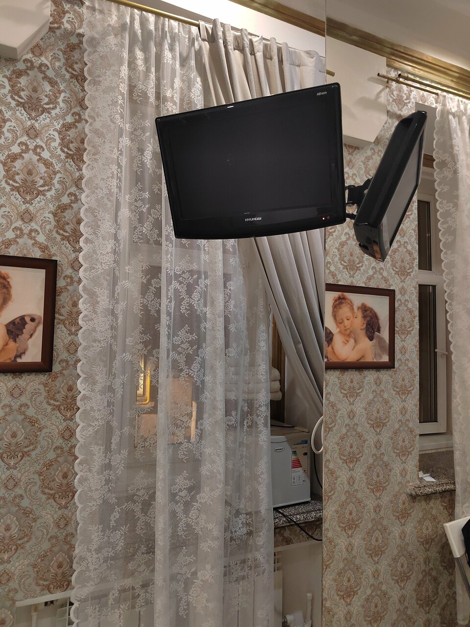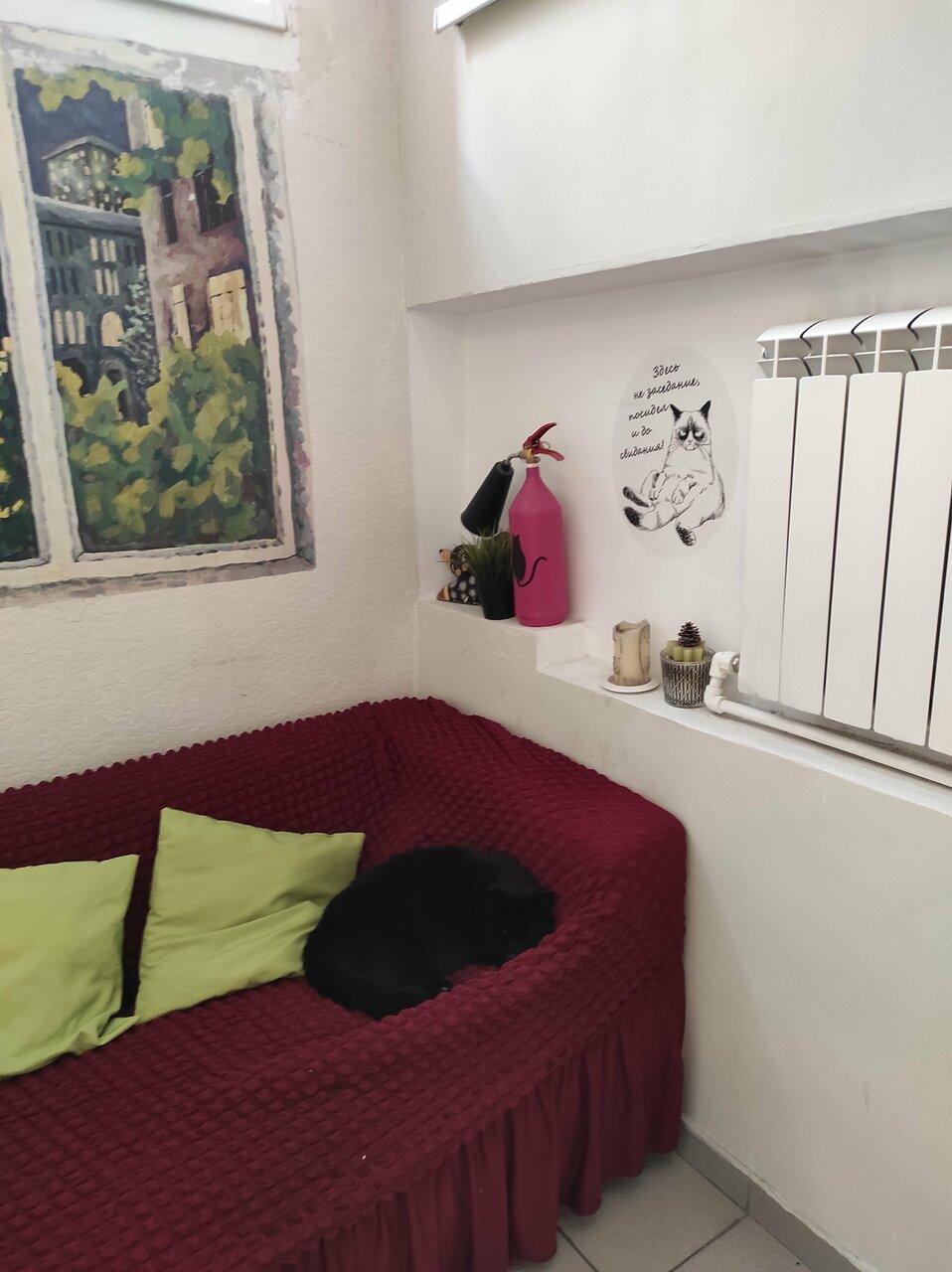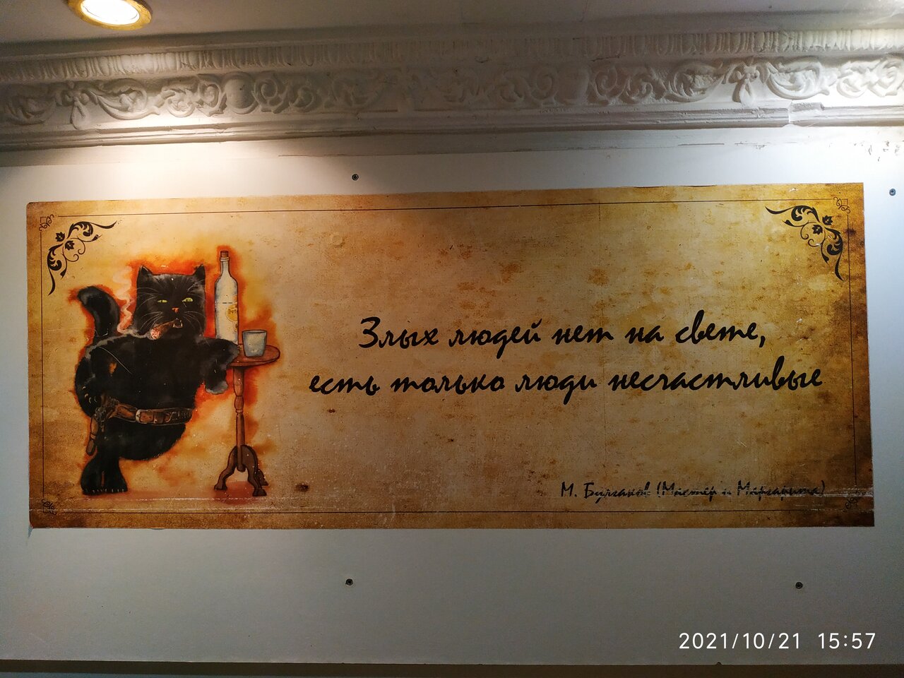 Если Вы любите дорого и богато, то Вам не сюда. Если Вы любите атмосферные места -то Вам точно сюда!!! Очень уютный отель с Булгаковским духом, что соответствует названию. Вход расположен во дворе. Поднимаясь по лестнице понимаешь, что попал в особенное место: пианино, уютные диванчики, старая радиола, настенные росписи, ложные двери и конечно-кот! Ресепш на втором этаже. Но, не ожидайте увидеть офисную стойку)) Все иначе и как то по домашнему Администраторы очень доброжелательные и готовы помочь, подсказать по любому вопросу. Номера небольшие, но как по мне очень уютные. Лепнина на потолке. В санузле -мыло, шампунь, гель для душа, фен. Тапочки и зубной набор лучше иметь свои. Белье чистое, комплект полотенец. Есть общая небольшая кухонька, оборудованная микроволновкой, плиткой, чайником и необходимой посудой. Чай кофе-бесплатно. Кот-это отдельная тема. Он прекрасен: добр, ласкуч, певуч, гостеприимный и очень любит ходить в гости к жильцам.