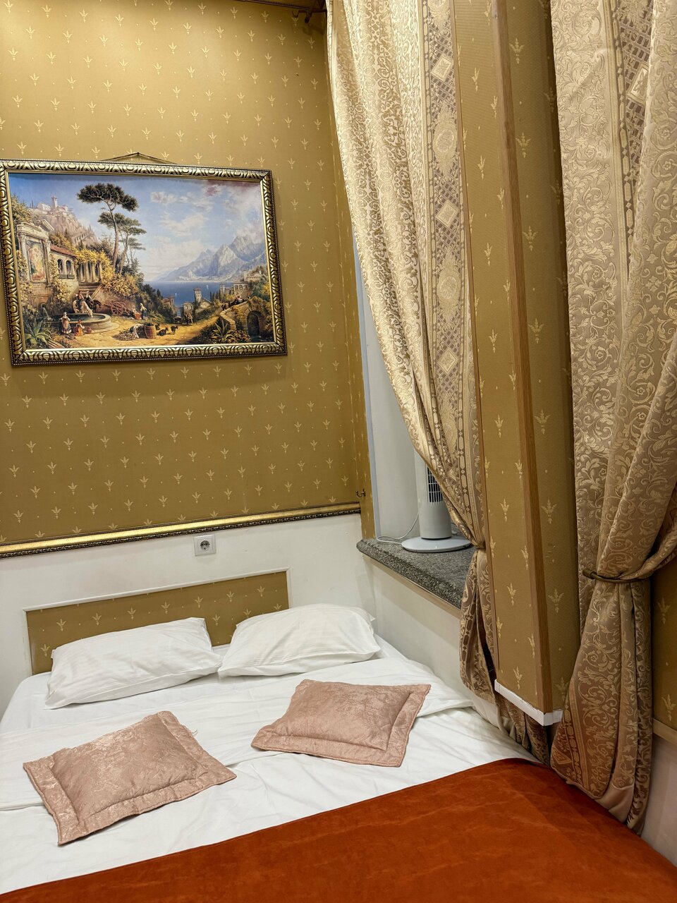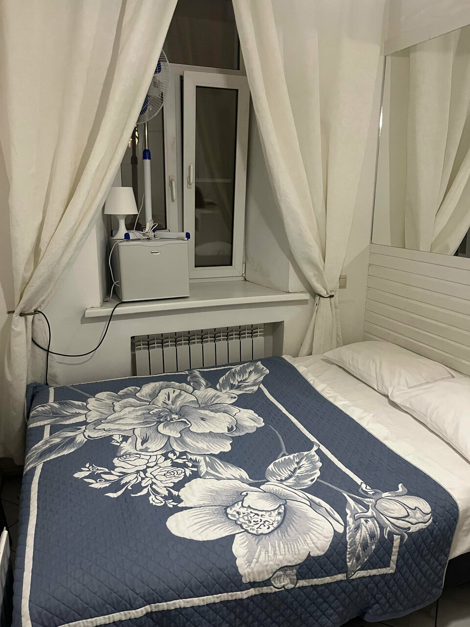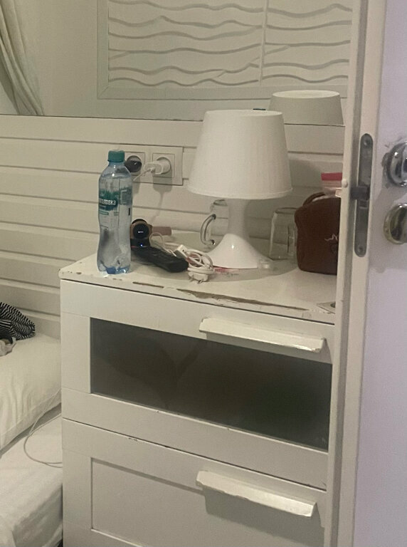 К нашему великому огорчению, фото не совсем соответствуют действительности. Очень маленькие комнатки. Я понимаю, что, по большому счёту можно и в таких комнатках переночевать, но вдвоём с трудом там помещались. Даже дверь в туалет и душ неполностью открывалась, т.к. она упиралась в кровать. Шкафа не было. Прикроватных тумбочек тоже. При сливе воды в унитазе, вода появлялась на полу. В общем , как-то убого. Персонал вежливый