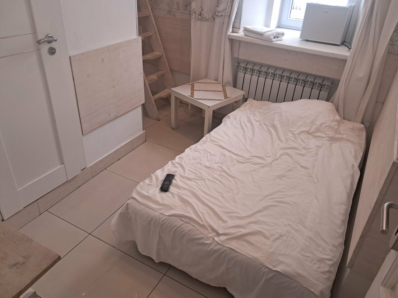 Матрасы неудобные, после сна чувствуешь себя разбитым. В остальном все ок, тесновато, но приятно. Интернет работает, горячая вода есть, белье чистое, старый Арбат за окнами и вообще — довольно бюджетно.