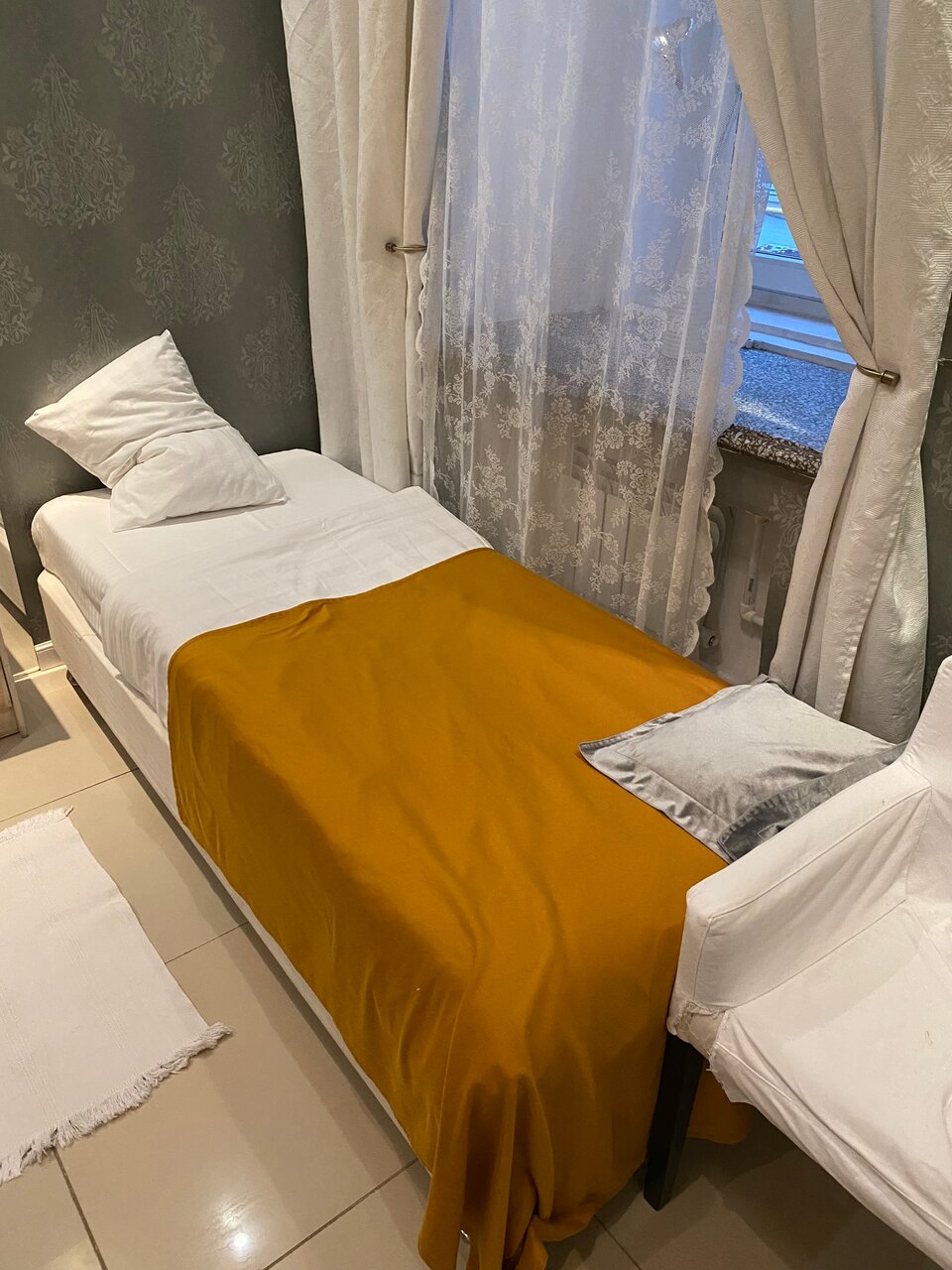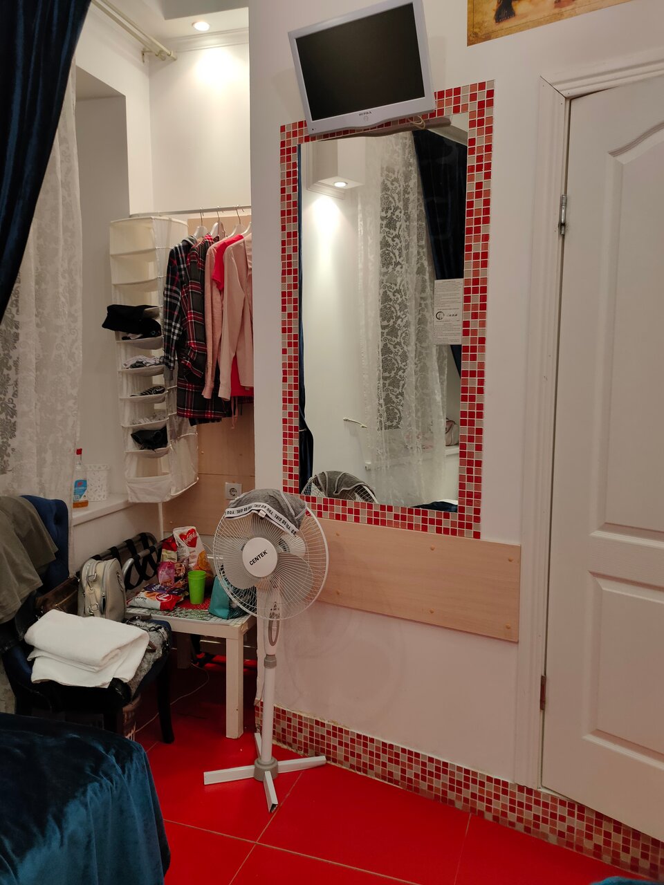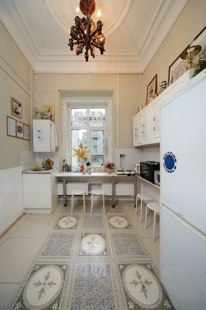 Расположение — идеальное, конечно. Самый центр, при этом никаких клубов под окнами, ночью тихо. Номер маленький, но чистый, уютный, есть самое необходимое. Очень симпатичное как само старое здание, так и интерьеры отеля, стилизованные под ‘Мастера и Маргариту’. Останавливалась зимой. В номере есть центральное отопление плюс электрический масляный обогреватель. Так что было тепло даже такой мерзляке как я. Душ/туалет собственный, а вот кухонная зона общая для всех гостей. Зато есть и мультиварка, и микроволновка, и плитка. То есть можно питаться не в ресторанах, а готовить самому (супермаркеты в 2-минутной пешей доступности тоже есть). Горячая и холодная вода постоянно в кулере. Достаточно посуды. В душе есть гель для душа, шампунь, жидкое мыло. Мне на меня одну выдали четыре полотенца. Все понравилось, если нужно будет остановиться в Москве — скорее всего предпочту этот вариант.