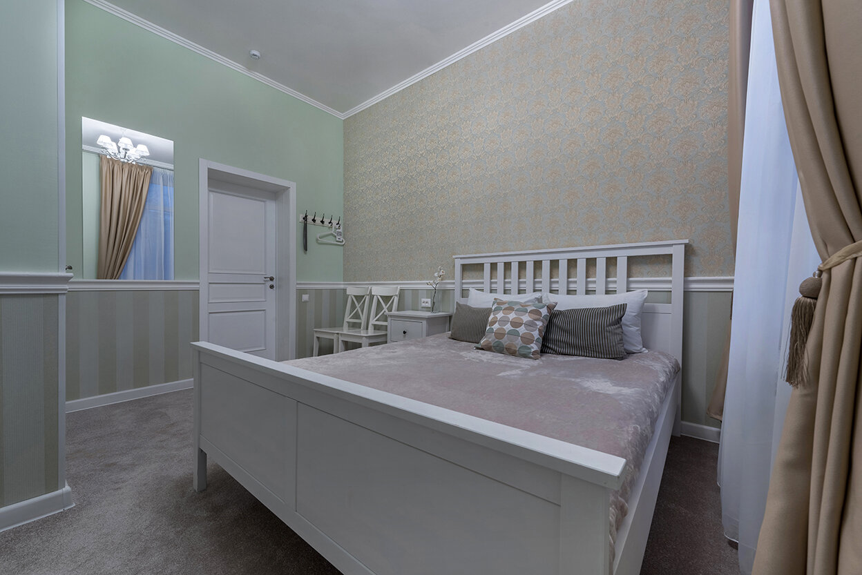 Сначала номер показался маленьким, но потом оценили отличные кровати, большую ванную, чистоту и приветливость персонала. Расположение отличное! Единственный момент, с чемоданом по лестнице не очень удобно, но дом старый, без вариантов.