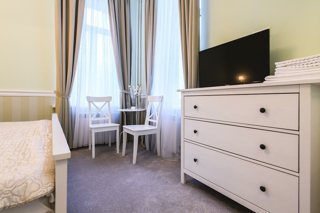 - Ежедневная уборка номеров.; Хорошее расположение (центр, рядом парк, кафе, магазины).; Тишина в номерах (несмотря на возможную слышимость).; Вежливый, доброжелательный и отзывчивый персонал.; Наличие кондиционера, телевизора, чайника, фена, средств гигиены.