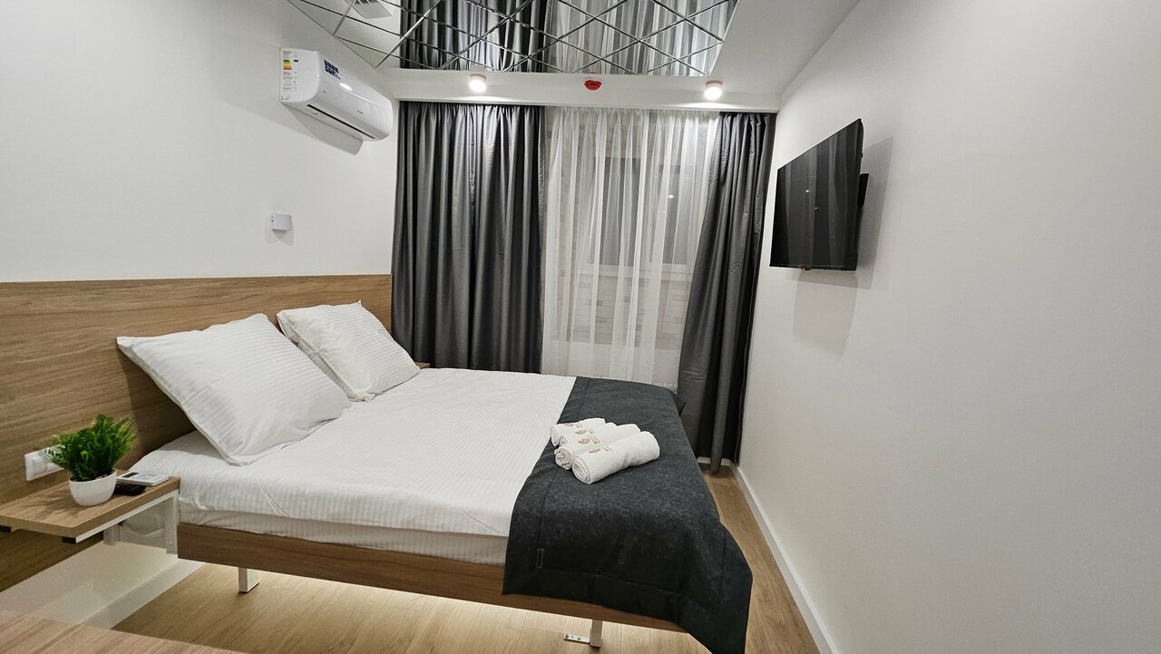 Уютный увеличенный номер с двуспальной кроватью и хорошим матрасом для комфортного сна.