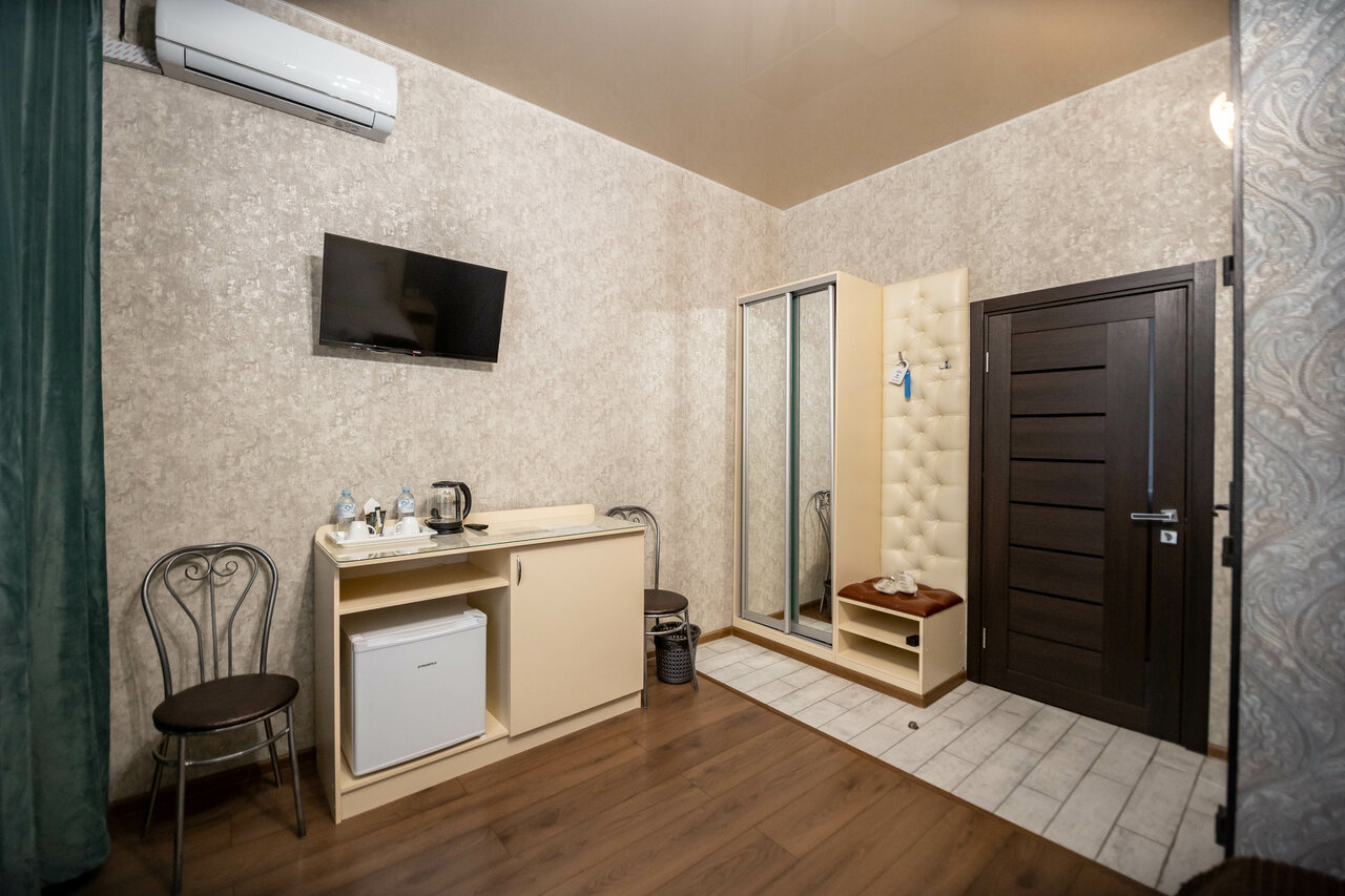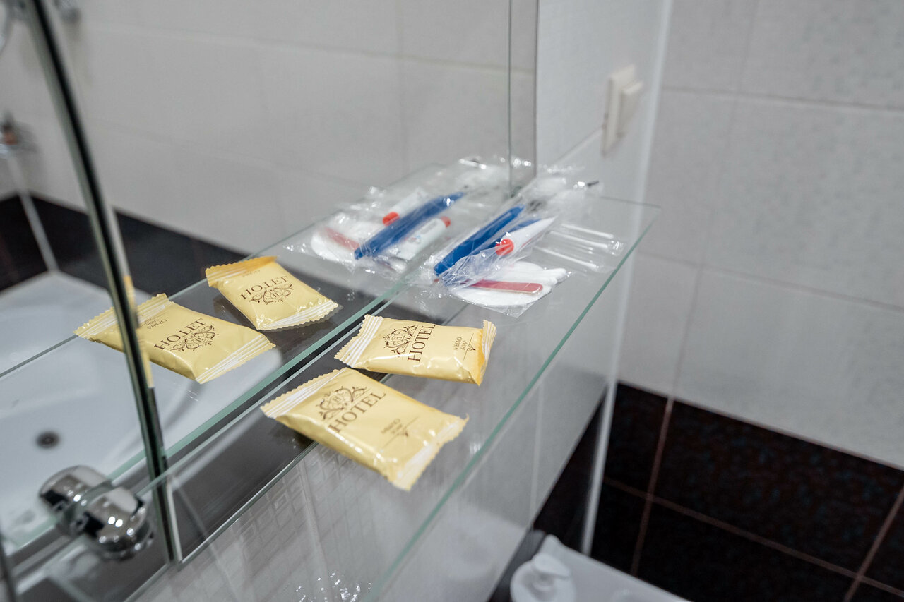 - В номерах есть всё необходимое (чайник, кондиционер, гигиенические наборы).