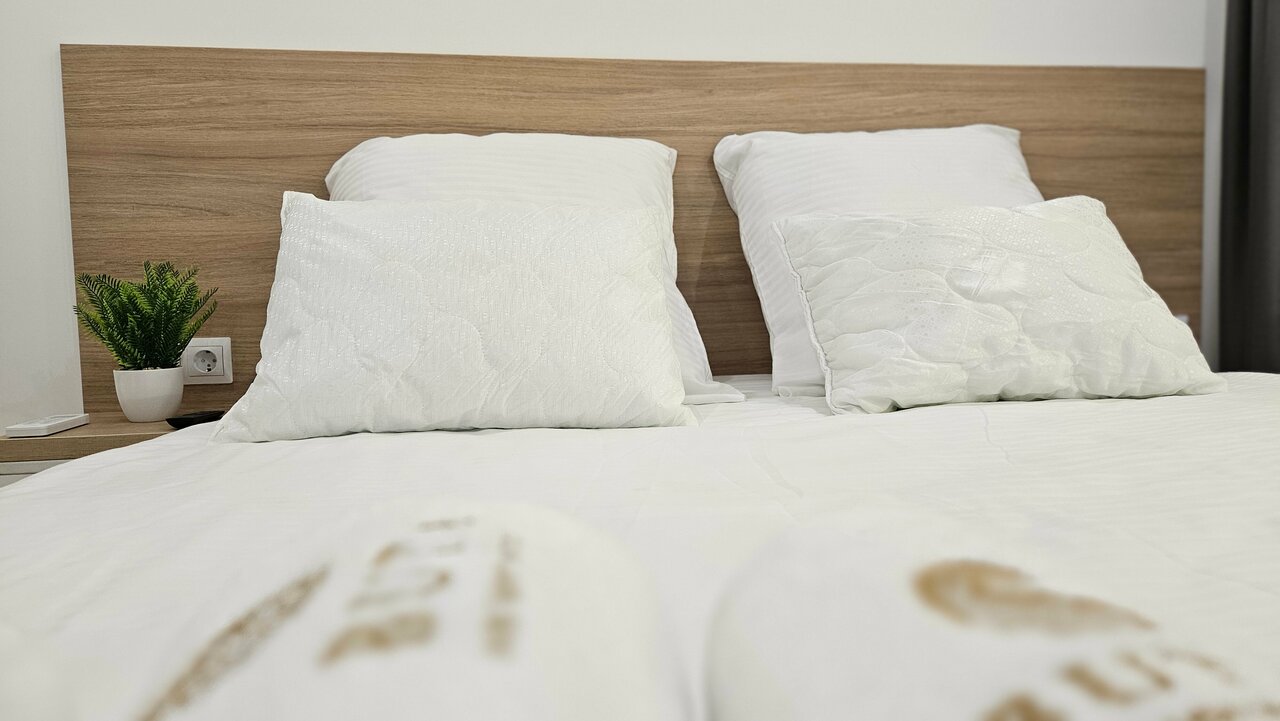 - Светлые и продуманные интерьеры.; Наличие дополнительных удобств (халаты, набор для бритья, иголки и пуговицы).; Белоснежное постельное бельё и полотенца.; Удобное расположение (близко к транспорту, магазинам).; Приятный дизайн, подсветка кровати.