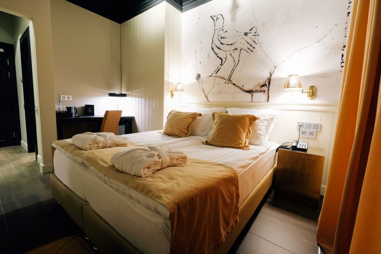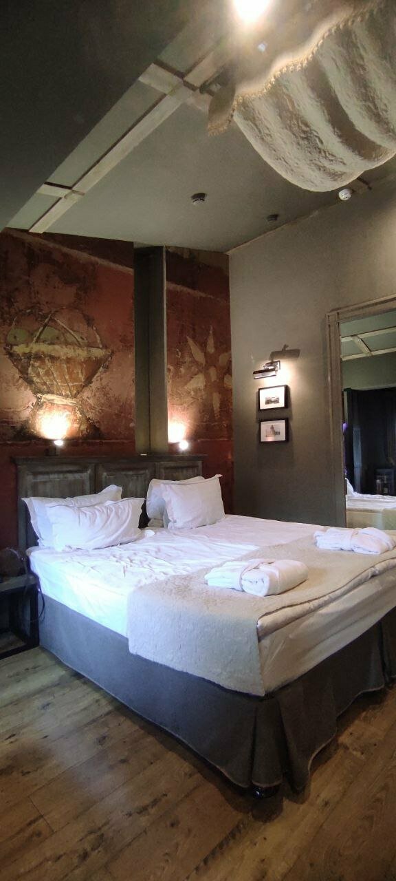 Отдыхали с подругой после ДР) Удобная локация , отличный персонал . Номер интересный и уютный . Все необходимое имеется . Халат , тапочки , необходимые принадлежности для гигиены . Есть мини бар . 2 одеяла, что очень круто ) Номера по разным блокам , с людьми не пересекаешься особо . Вестибюль тоже интересная , есть зеркало в полный рост , диванчик . Мне понравилось .
