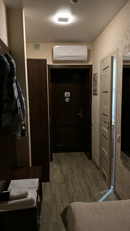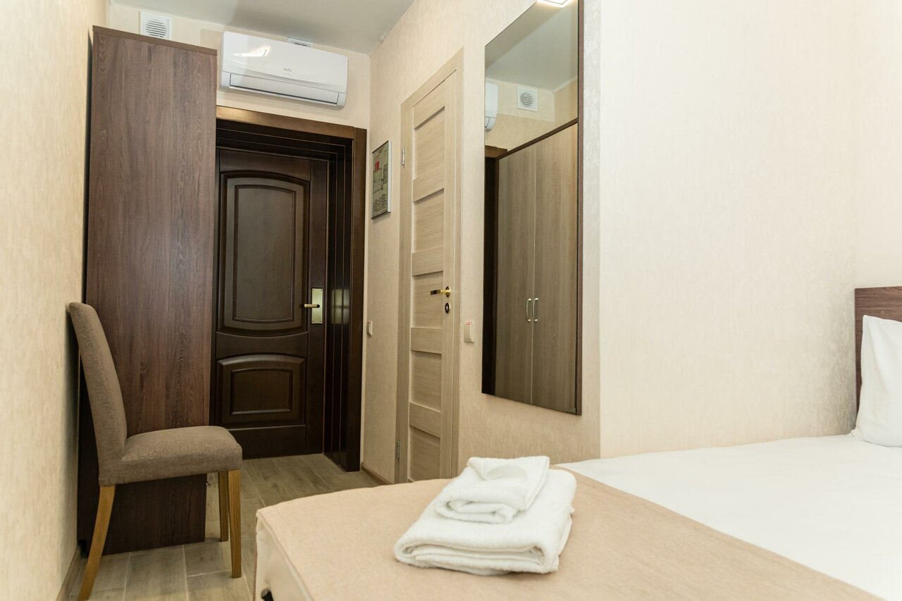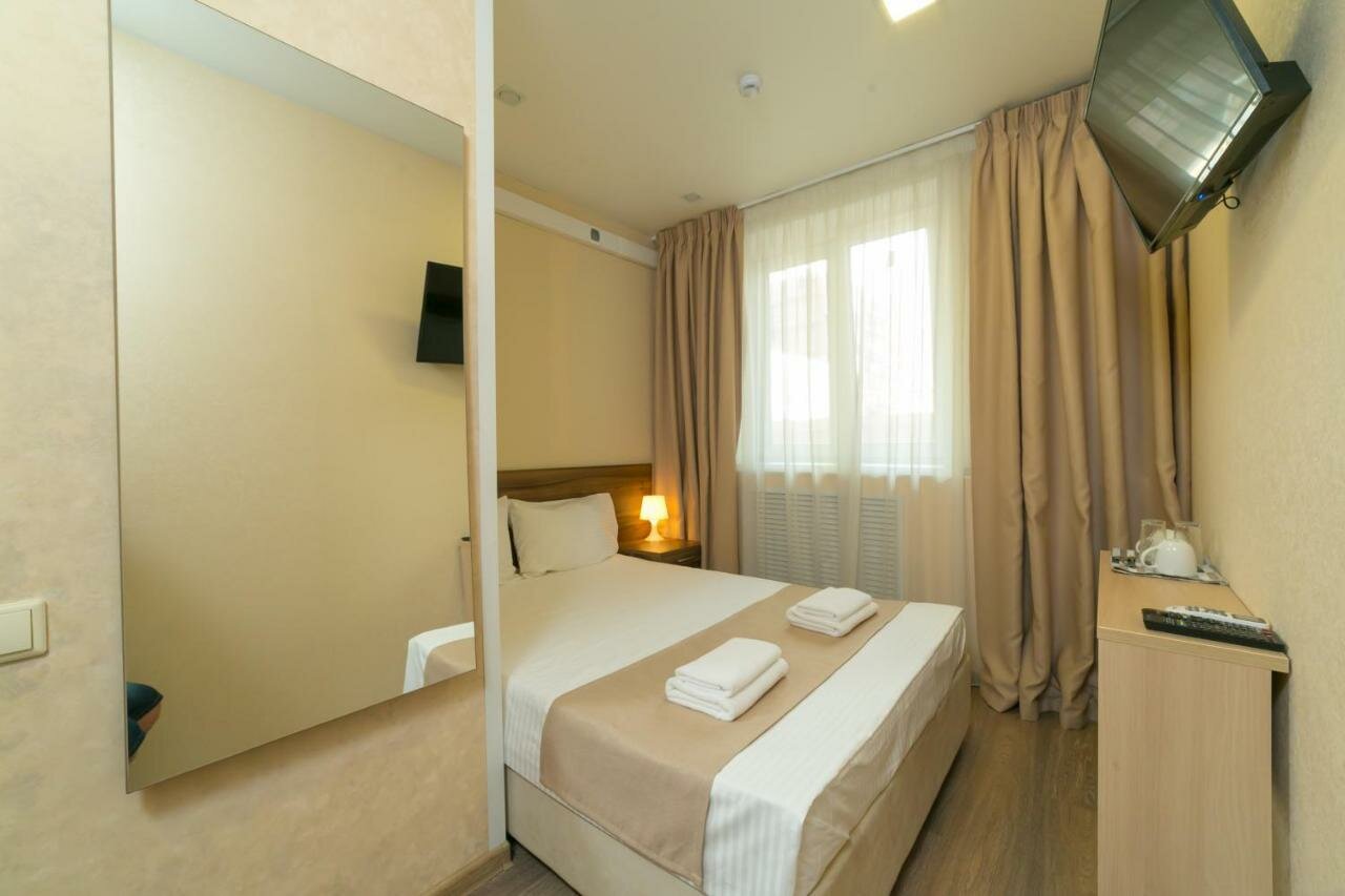 Не ведитесь на лестные отзывы! Отвратительно! Единственое преимущество, что есть постель и уродличый туалет с крошечной душевой. Чайника нет, столик 50 на 100 см, на маленький стульчик сесть невозможно, ноги некуда деть.Я сама очень маленькая, 155 см. А самое страшное то, что ночью стала работать вытяжка, громкая, как бормашина, и мне сказали, что так надо. Открылся нервный тик. Ночь прошла без сна. А ещё совершенно негде поесть!!! Если вы, конечно, не брезгуете готовой едой из Магнита. За 2000 руб., может быть. От безысходности. Но за 4850-жалко не столько денег, сколько своего здоровья. Вывеска -мест нет. Но, по факту, кроме меня и дочери, в этом месте никого не было.