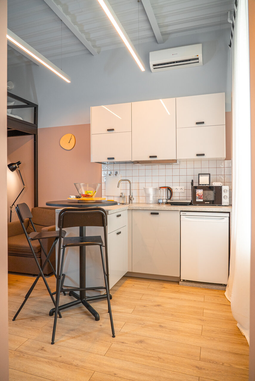 Бронировали через озон-travel. Приехали в столицу на выходные. Удачное местонахождение в центре, некоторые достопримечательности в шаговой доступности. Номер как квартира-студия, есть все необходимое: мини-кухня, кровать и раскладной диван, душевая комната, полотенца, тапочки, щетки и т.д. Номер теплый, с большой сушилкой. Ремонт на твердую 4ку. Из минусов — не работала плита.