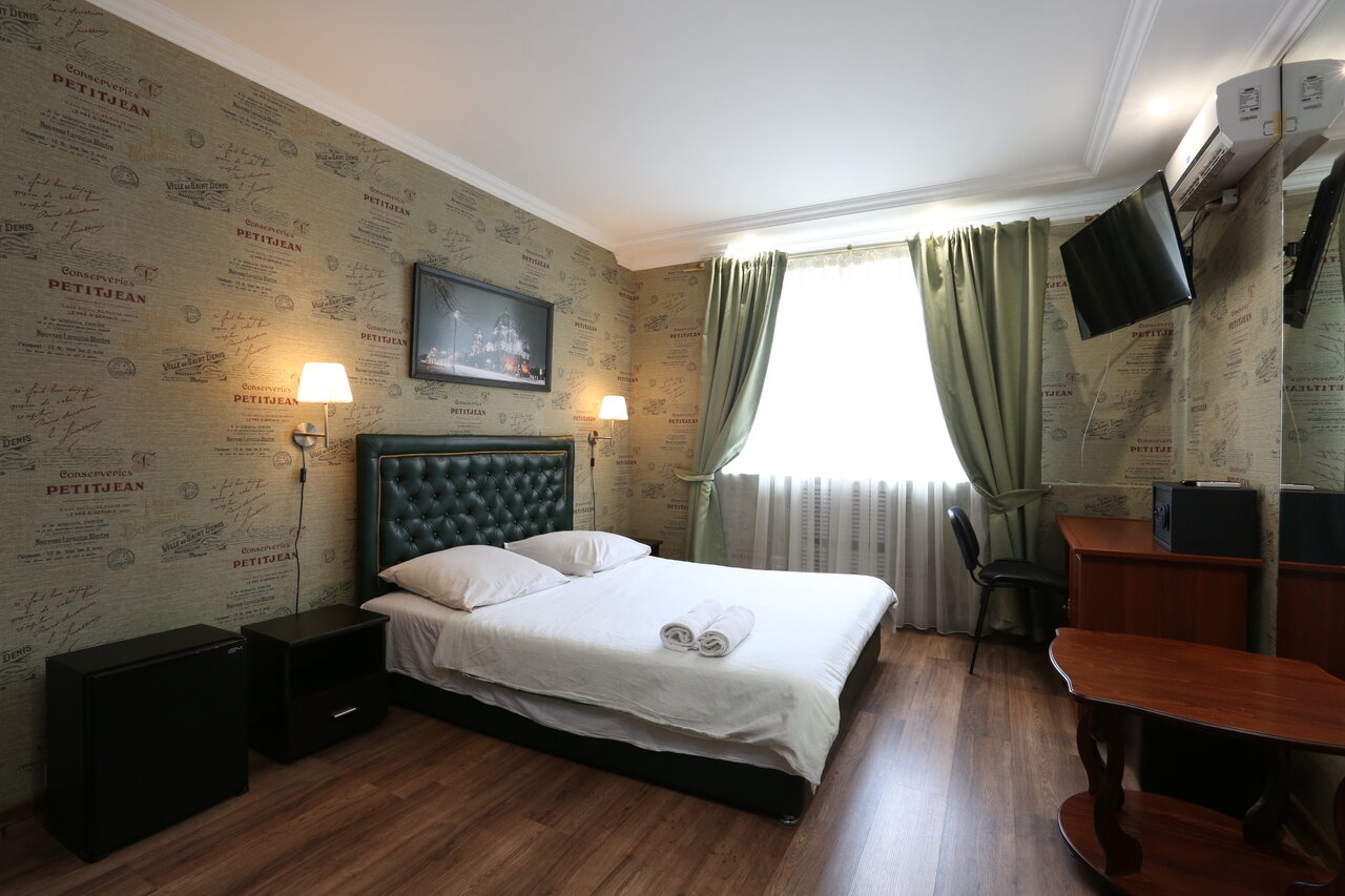 Однокомнатный 2-х местный номер Стандарт без балкона со всеми удобствами для отличного отдыха.В номере: две односпальные кровати, сплит-система, холодильник, телевизор, электрический чайник, санузел с душевой, туалетные принадлежности, фен.