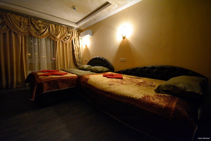 Сняла номер на 2 с большой кроватью, была одна, пододеяльника нету, накрываешься обычным пледом и не факт что вообще его стирают после посетителей , кровать у изголовья вся поцарапаная как будто там кошки жили. Жалко что фото не сделала.