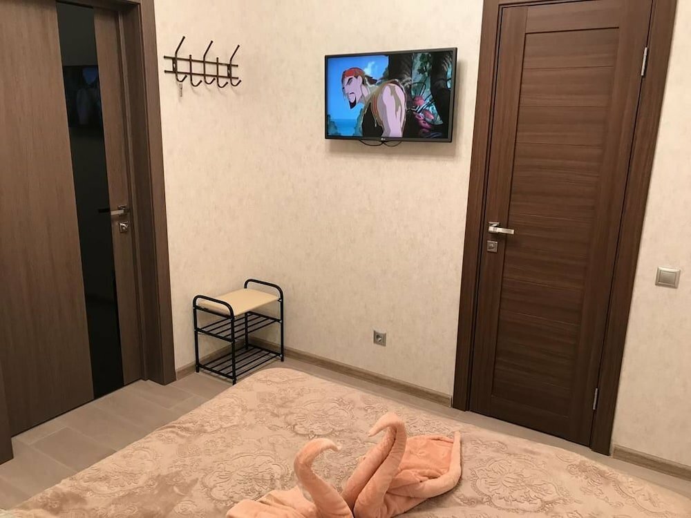 В номере:двуспальная кровать, диван-кровать и односпальная кровать или двуспальная кровать и 3 односпальные кровати, шкаф, телевизор, кондиционер, мини-кухня, мини-холодильник, чайник, посуда, мультиварка или одноконфорочная плитка.Цена мая