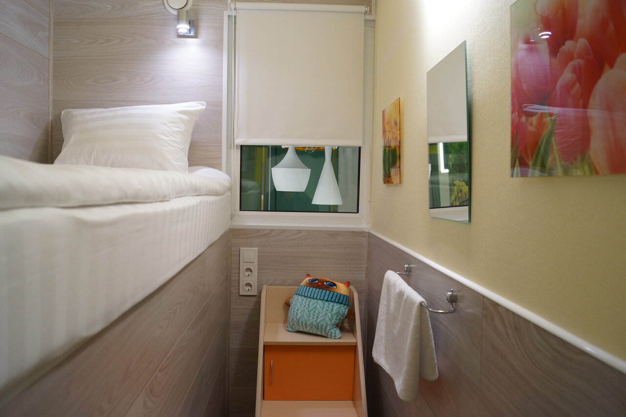 Отель понравился, это что-то между капсулой и хостелом. Практически в центре столицы, чисто, есть свой порядок, на кухне бесплатно кофе/чай, также выдают тапочки и полотенца. Рекомендую, особенно, если нужно остановиться в Москве на 1-2 дня чисто для ночлега!