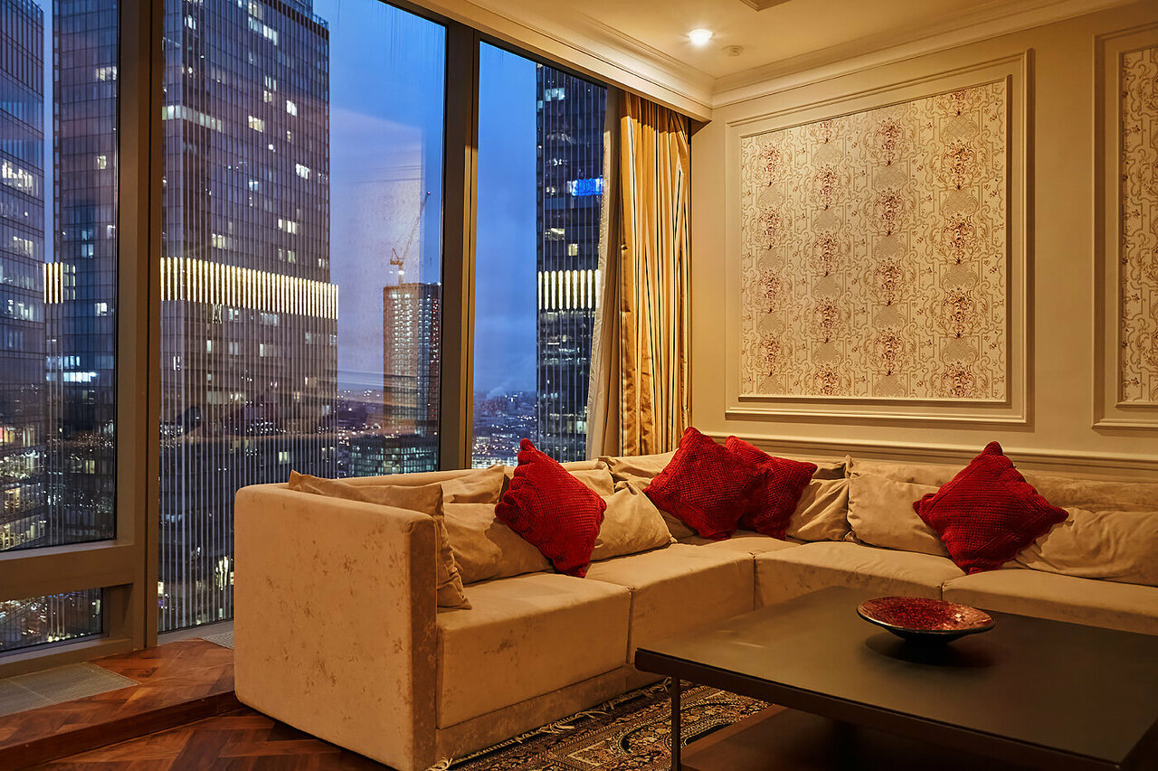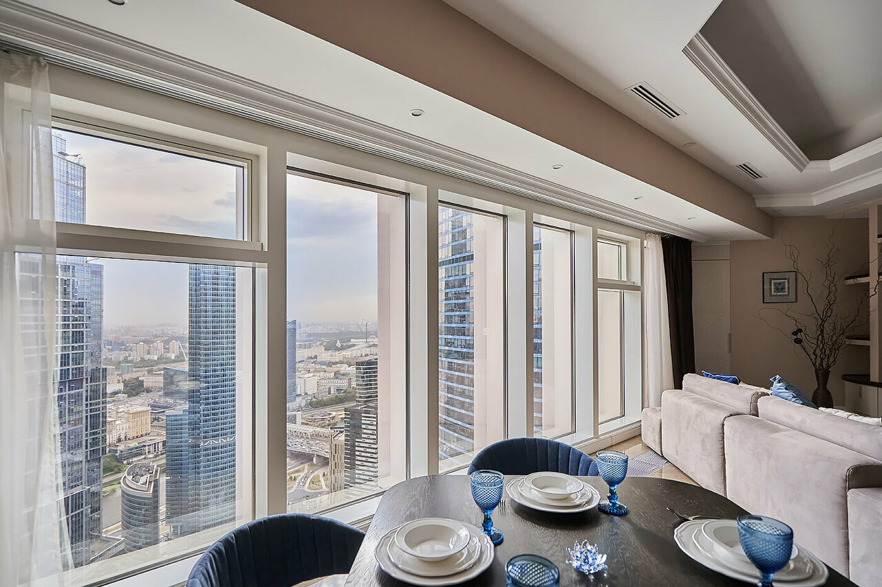 Апартаменты “View” в Москва-Сити — Новый уровень комфорта с захватывающим видом View — это стильные апартаменты площадью 110 м² на 49 этаже башни “Федерация Запад”, в которых сочетаются элегантный дизайн и передовые технологии