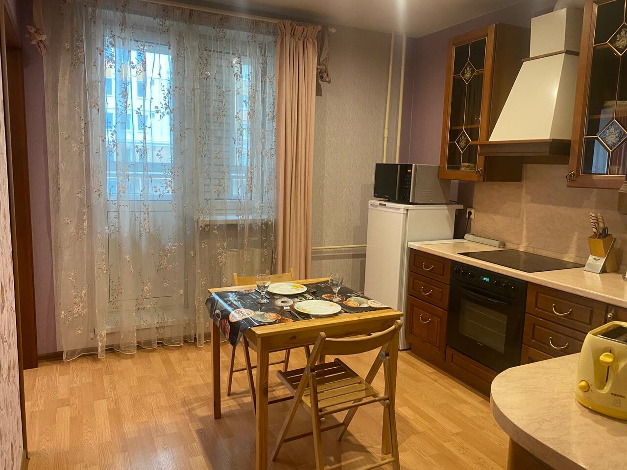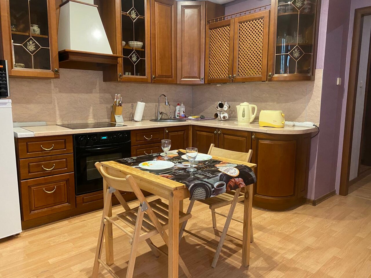 Очень приятная квартира. Есть все необходимое для проживания, полное соответствие описанию. Чувствовалоась забота от хозяев о мелочах. Чисто, уютно. Отличное расположение. В шаговой доступности супермаркеты, аптека, остановка транспорта. Чистый двор с детской площадкой. Плюс в этом же доме располагается столовая.