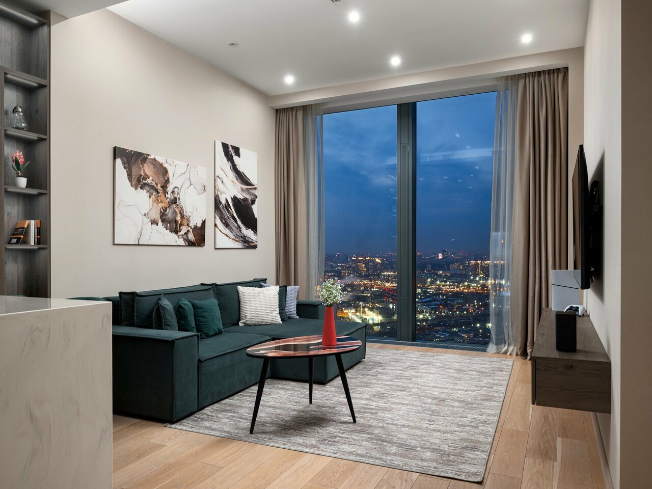 Современные элитные апартаменты на высоком этаже, где вы сможете насладиться захватывающим видом на город.