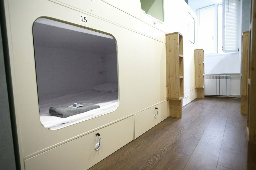 Спальная капсула с освещением, полочкой, розетками, зеркалом, крючками для вещей- Постельное белье,полотенце, шампунь и гель для душа- Закрывающийся локер для ценных вещейИфраструктура отеля - wi-fi, кухня, лаундж, завтраки