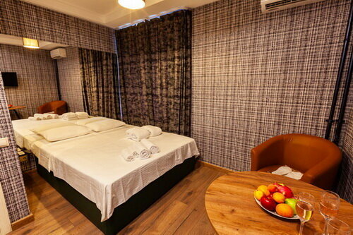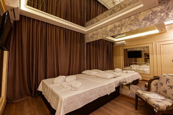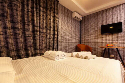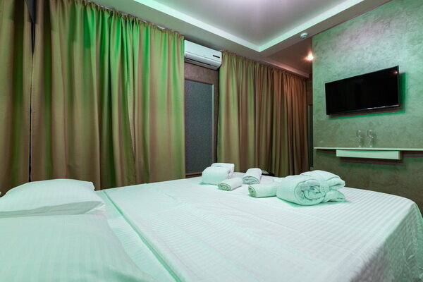 Услуги: — Номера (от 3500–5000 ₽/ночь) с кондиционером, Wi-Fi, ТВ, мини-баром, феном, халатами. — Джакузи в номерах, звукоизоляция, вид из окна. — Бесплатная парковка, доставка еды и цветов в номер. — Бар, чай/кофе в номерах, уборка.
