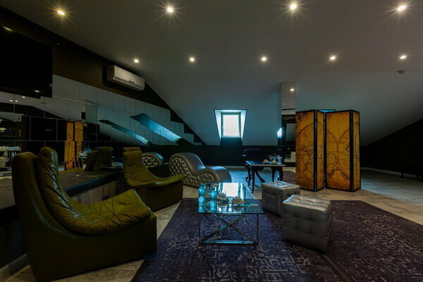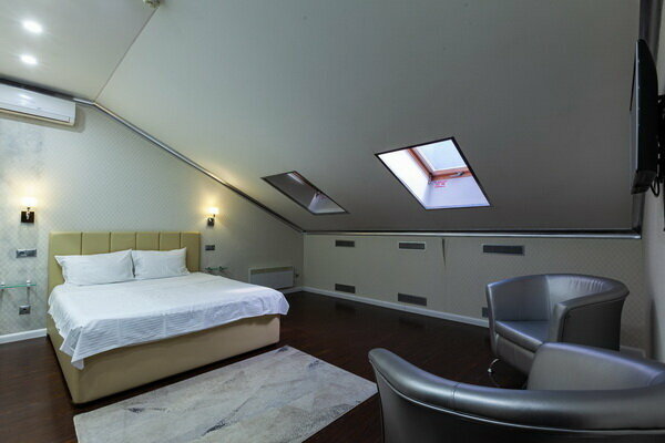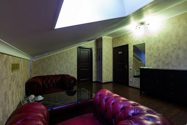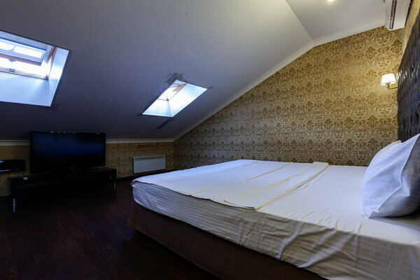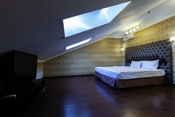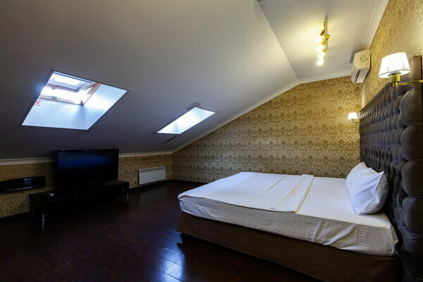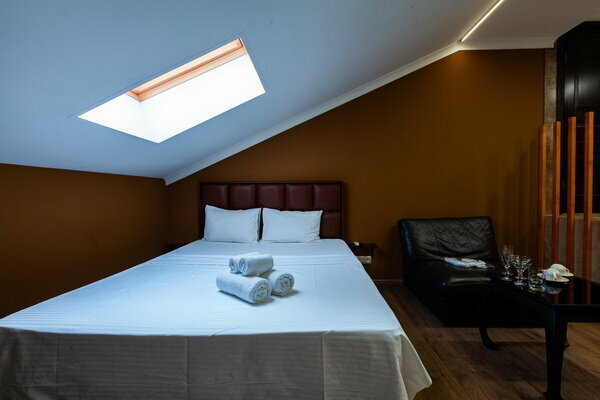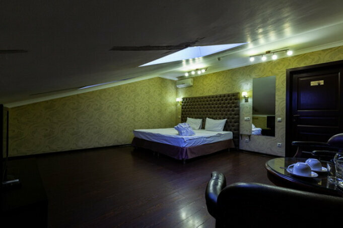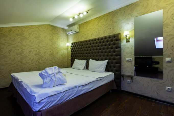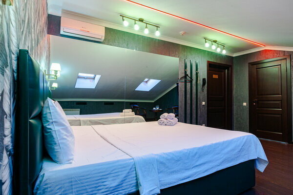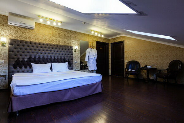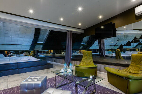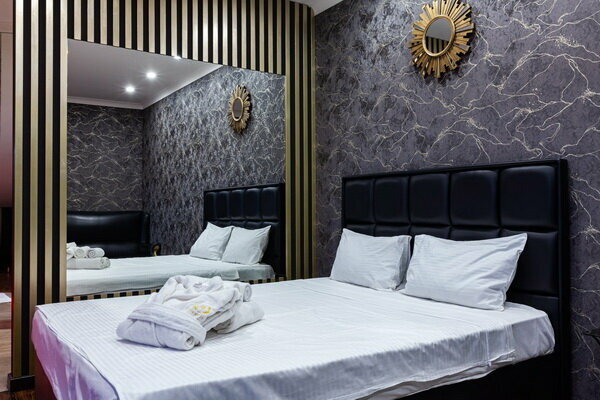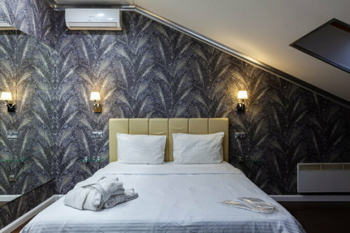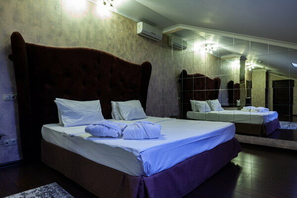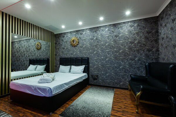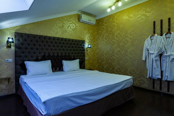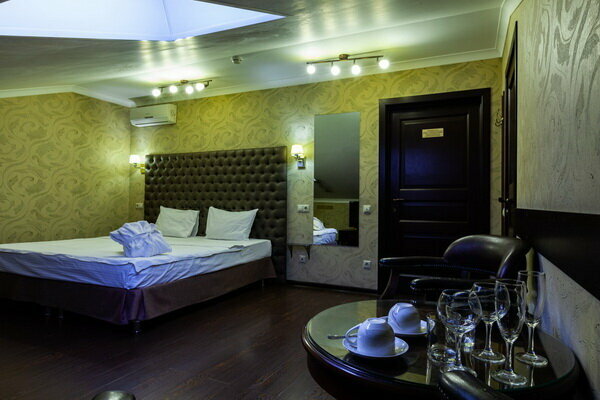 Услуги: — Номера (от 3500 ₽/ночь, от 1000 ₽/час) с кондиционером, Wi-Fi, мини-баром, чайником и дизайнерским интерьером. — Бесплатная парковка, трансфер, круглосуточная стойка регистрации. — Удобства: фен, сейф, телевизор, посуда, доставка еды/цветов.